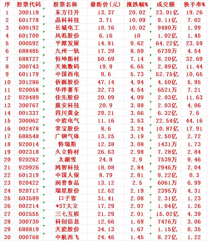 12月15日,MACD日线金叉的30名单汇总 东方日升:最新价13.37元,大