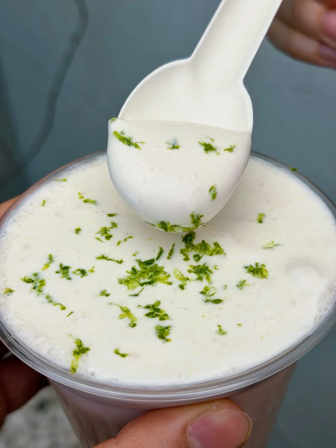 果味浓而不齁,底部脆甜的青提果肉咬着超爽,没有一个人能喝完不沦陷,百喝不腻款!