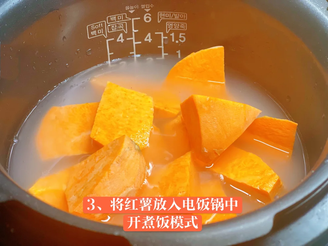 🍚白米饭吃够了,换个口味来个红薯饭吧,满满都是儿时的味道[色色R] 1、红薯切成小块 2、大米淘洗后放入适量水 3、将红薯放入电饭锅中,开煮饭模式 4、香甜可口的红薯饭做好啦✌️