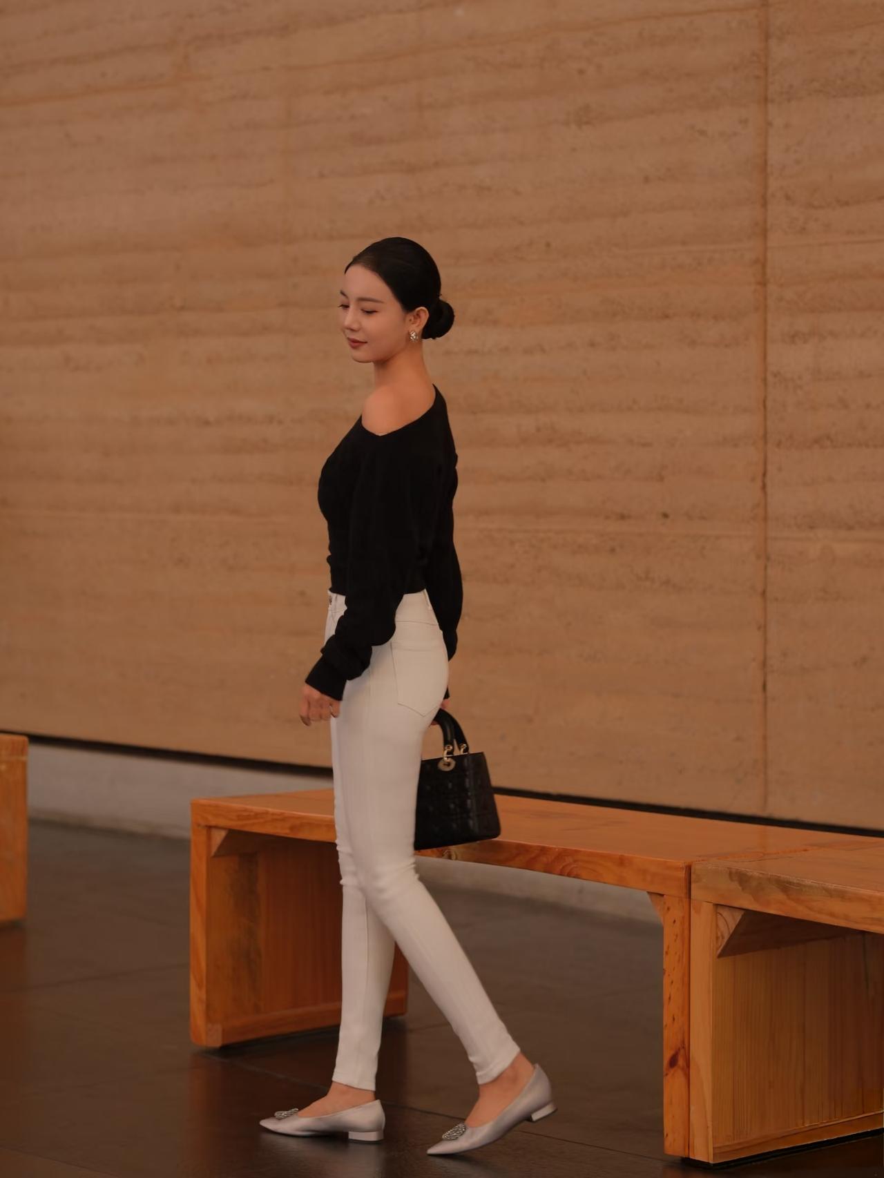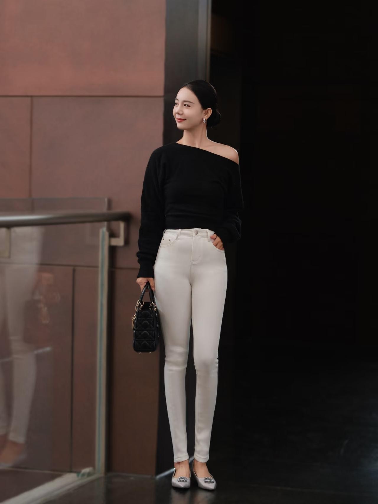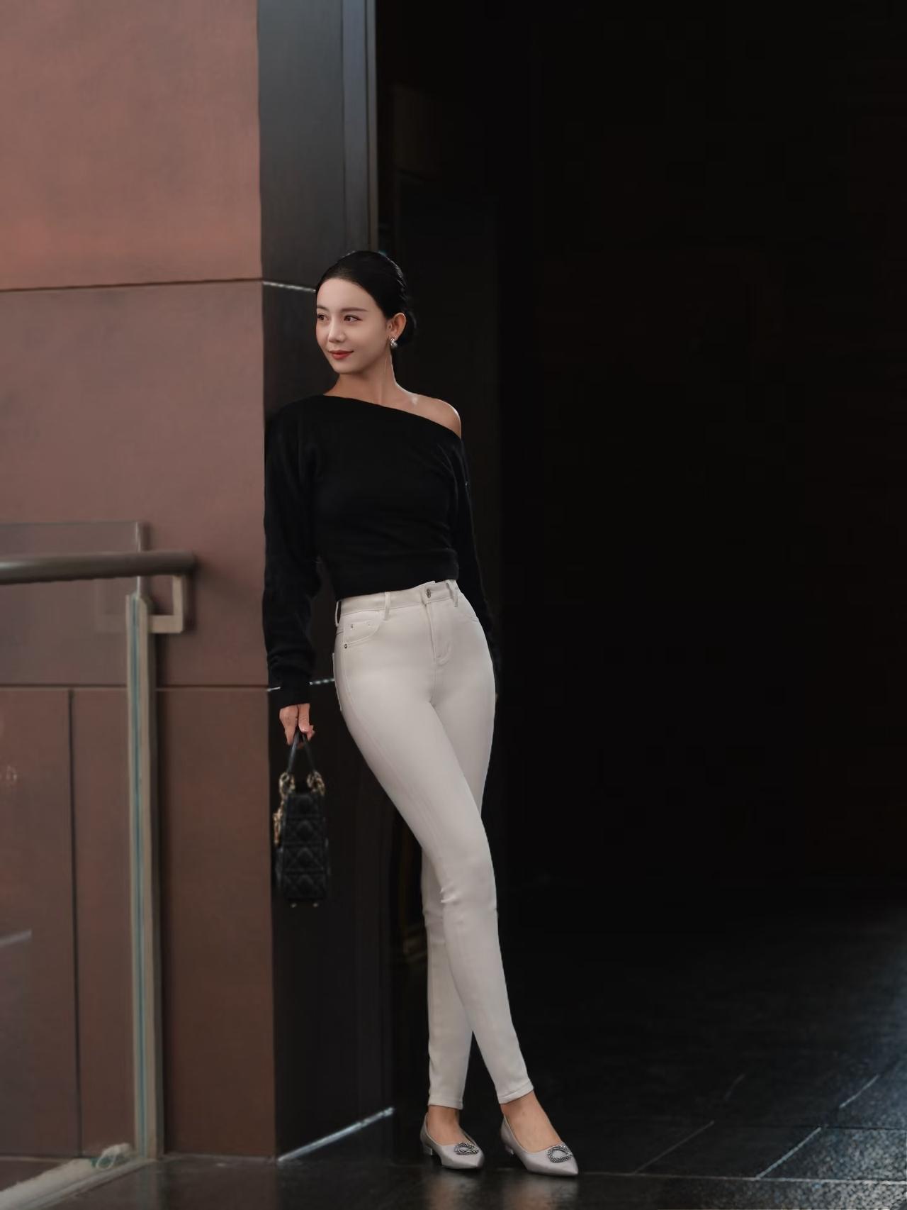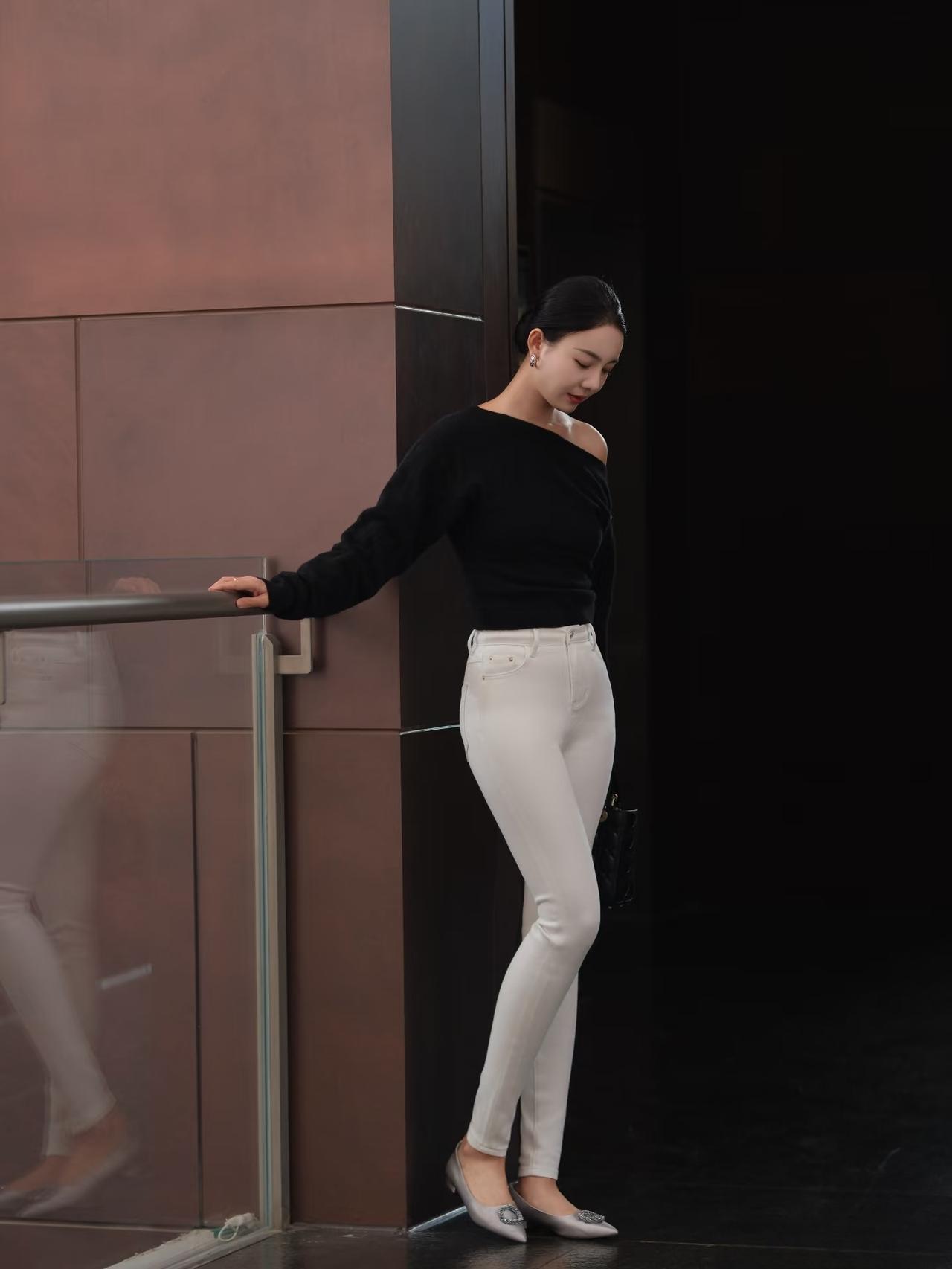 优雅自信穿搭分享经典的黑上衣和白色小脚裤搭配,时尚潮流自信气质十足!
