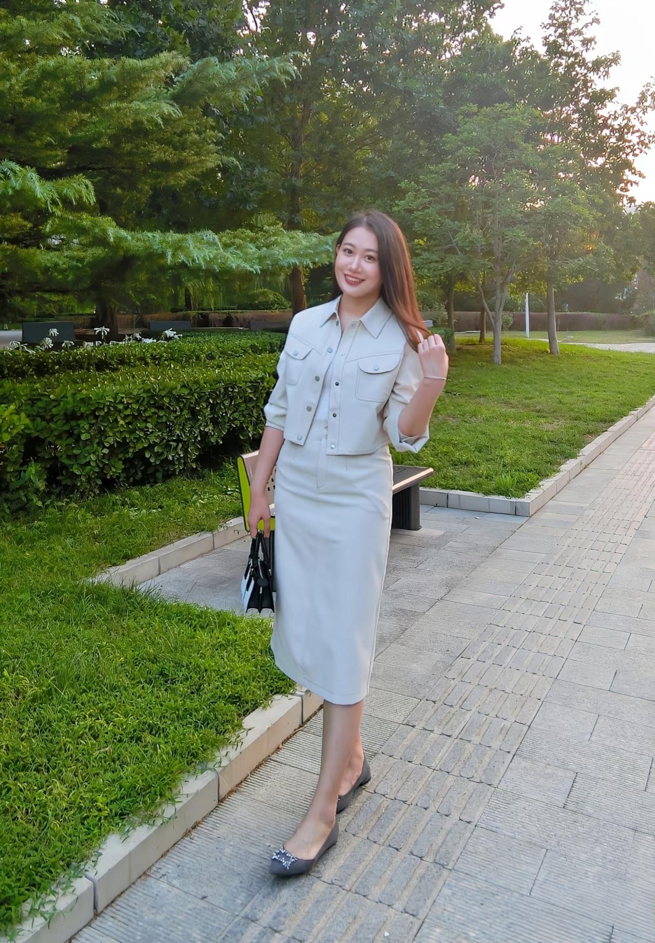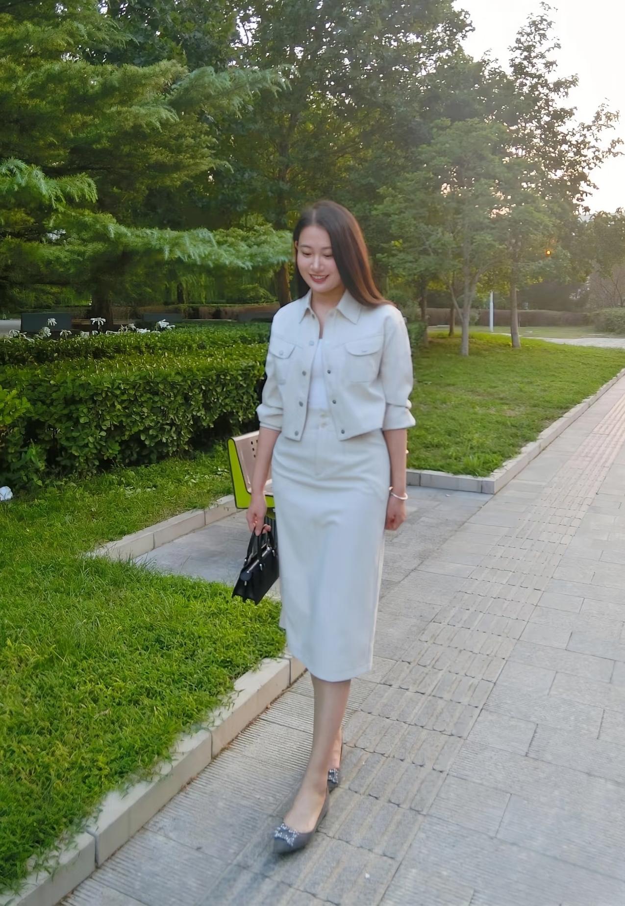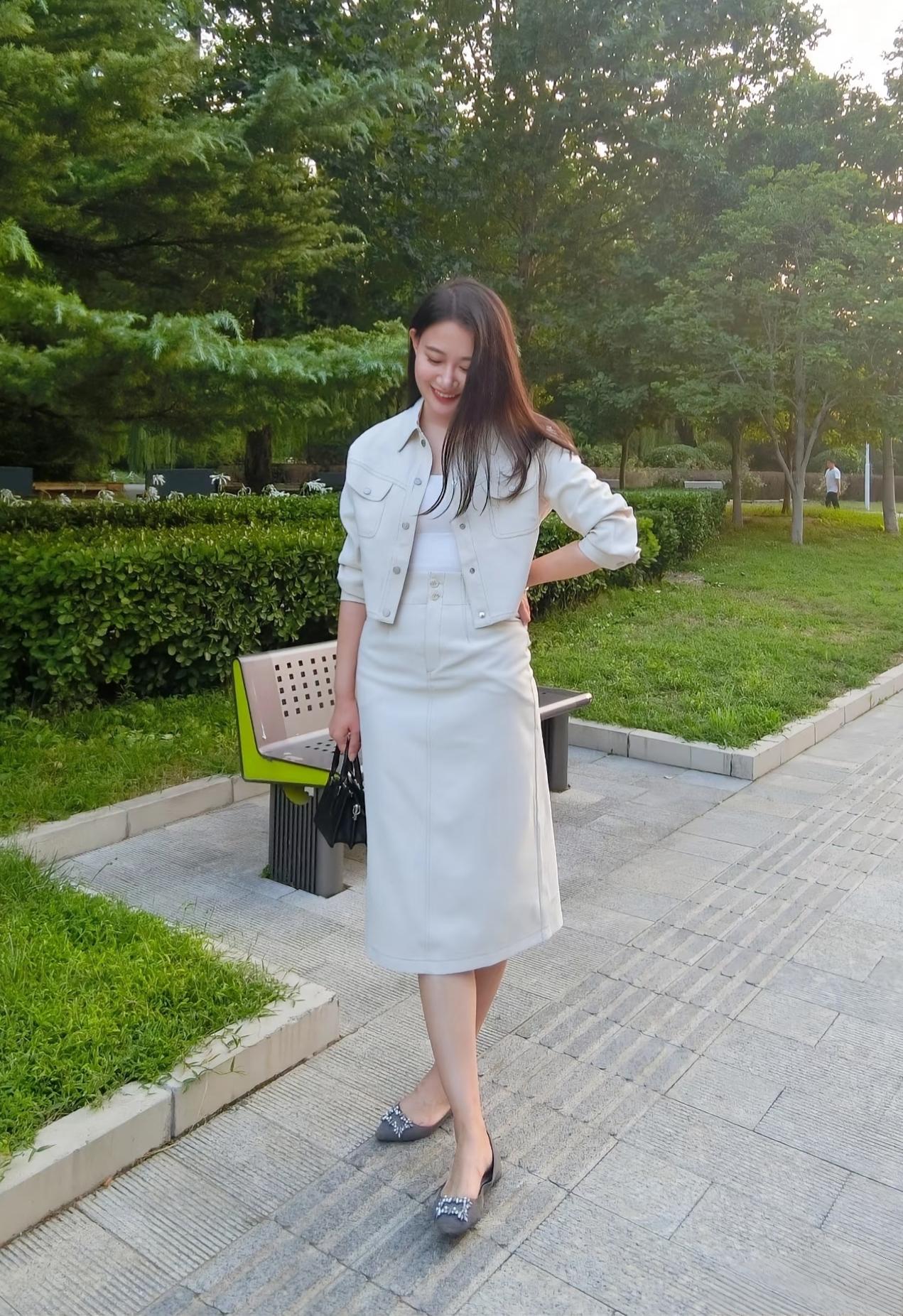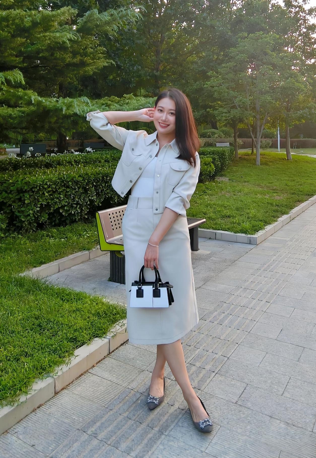 优雅自信穿搭分享黑色的中长款外套,搭配白色的阔腿裤和黑色的皮鞋,知性优雅气质,休