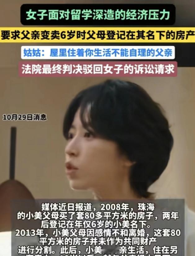 广东珠海,一名女子因为留学的经济压力,想要把父母离婚前登记在自己名下的房子卖掉。 但是这个房子现在住着脑梗的父亲和过来照顾的姑姑。 女子想要父亲和姑姑搬走,父亲因为没有其他房产,也没有能力去租房拒绝。 于是女子将父亲和姑姑起诉到法院,法院判了。 29岁的林悦(化名)在国外读研已有两年。 近两年汇率波动加上学费上涨,原本就不宽裕的经济状况愈发紧张,甚至连下一季度的房租都快凑不齐。 她思来想去,唯一的出路就是卖掉珠海那套登记在自己名下的房子。 这套房子是父母离婚前买的,当时为了方便后续孩子入学,直接登记在了未成年的林悦名下。 父母离婚后,父亲林建国(化名)一直住在这套房子里,母亲则搬去了外地再婚。 半年前,林建国突发脑梗,左侧身体偏瘫,生活无法自理。 林悦的姑姑林建梅(化名)主动从老家赶来,专门照顾哥哥的饮食起居。 林悦先通过视频电话和父亲沟通卖房的事。 电话里,她语气急切地说明自己的困境,希望父亲能暂时搬去姑姑家,等房子卖掉后,会拿出一部分钱给父亲租个舒服点的房子。 林建国听完后,沉默了很久,最终还是摇了摇头。 他口齿不清地说:“这是我唯一的家,搬出去……我去哪?” 林建国退休工资每月只有三千多,扣除医药费后所剩无几,根本无力承担租房费用。 姑姑林建梅也在一旁帮腔:“小悦,你爸现在这个样子,根本经不起折腾。 我老家的房子也小,住不下我们三个人,你再想想别的办法不行吗?” 林悦觉得自己很委屈,她反驳道:“房子本来就是我的名字,现在我遇到难处了,卖自己的房子天经地义。 我也不是不管爸爸,只是先过渡一下,等我经济好转了,肯定会好好照顾他。” 双方各执一词,沟通陷入僵局。 林悦又尝试联系母亲,希望母亲能帮忙劝说父亲,或者暂时接父亲住一段时间。 可母亲表示自己重组家庭后,生活也不宽裕,家里没有多余的房间,实在无法帮忙。 走投无路的林悦,最终决定通过法律途径解决问题,将父亲林建国和姑姑林建梅一并起诉到珠海市香洲区人民法院,要求两人立即腾退房屋。 法院受理案件后,依法公开开庭审理。 庭审中,林悦提交了房屋所有权证,证明自己是涉案房屋的合法所有权人,依法享有占有、使用、收益和处分的权利。 她表示,自己并非恶意驱赶父亲,只是确实面临巨大的经济压力,卖房是无奈之举。 林建国的委托代理人则辩称,涉案房屋虽登记在林悦名下,但购买时林悦尚未成年,购房款全部由林建国和前妻支付。 该房屋应视为父母对子女的赠与,但林建国作为赠与人,在生活困难且无其他居所的情况下,有权要求子女履行赡养义务,保障其居住权。 林建梅也表示,自己只是出于亲情帮忙照顾哥哥,并非无故占用房屋,不同意腾退。 法院审理后认为,根据《民法典》规定,不动产物权以登记为准,林悦作为房屋所有权人,有权主张腾退房屋。 但同时,子女对父母有赡养扶助的义务,林建国年老多病,无固定居所和稳定经济来源,林悦应保障父亲的基本居住权益。 综合考虑双方实际情况,法院最终判决:林建国、林建梅于判决生效后三个月内腾退房屋。 林悦应于房屋腾退前,为林建国租赁一套适合其居住的房屋,租赁期限不少于两年,首期租金和押金由林悦承担。 判决结果出来后,双方都没有上诉,均表示接受判决。 林悦主动联系了姑姑,一起为父亲寻找合适的房源。 信源:女儿为留学想卖掉其名下的房子,起诉要求病重的父亲腾房,法院判了!-澎湃新闻