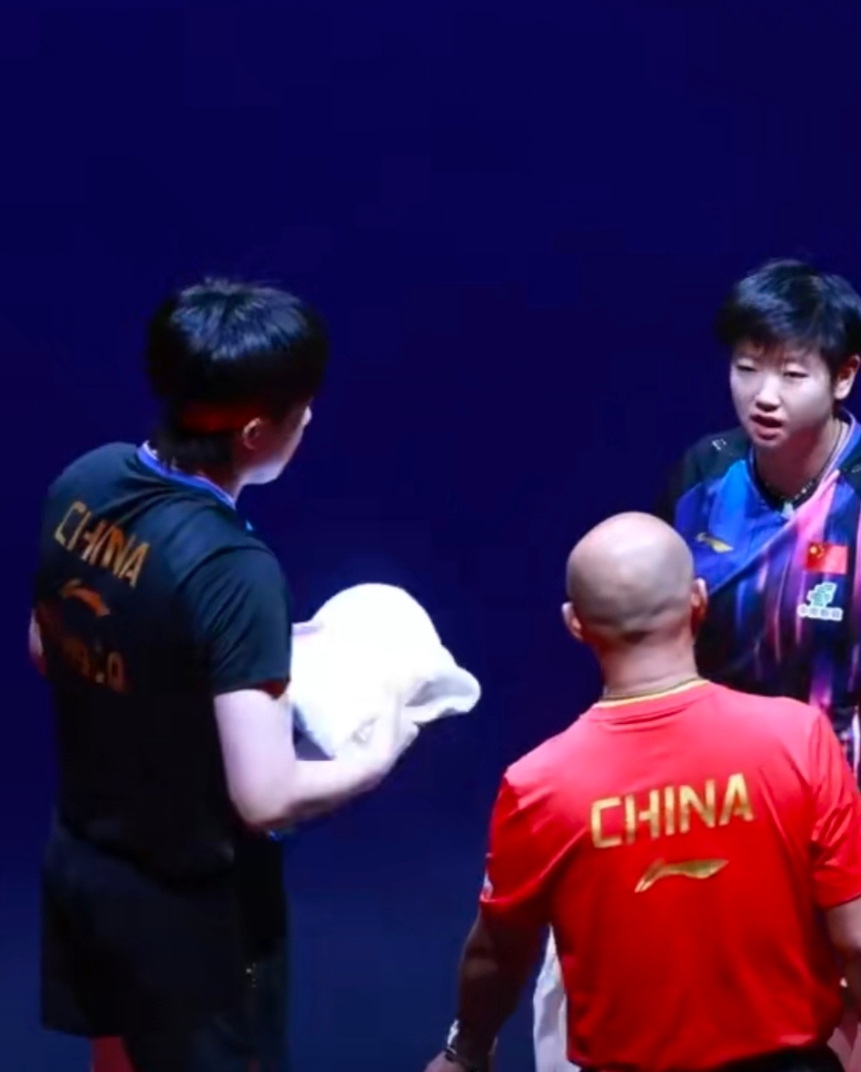 王楚钦孙颖莎背着肖指导沟通战术 其实并不是“背着”肖指导沟通战术,而是王楚钦和孙颖莎随着搭档年限增加,形成了无需教练过多介入的临场默契沟通,肖指导对此反而很安心。比如2025年香港总决赛上,就有镜头拍到两人在肖指导面前说悄悄话交流战术,肖指导看着他们这对组合满脸放心,局间两人也会毫无顾忌地商量打法。而在2024年布达佩斯世乒赛混双决赛,他们更是首次在决胜局未叫暂停,自主完成战术调整并锁定胜局。到了2025年WTT中国大满贯混双半决赛,王楚钦突然改变发球旋转,孙颖莎几乎同步启动侧身位完成战术配合,赛后王楚钦也提到和莎莎、肖指导的沟通十分高效。这种赛场上的即时沟通,是两人八年搭档练出的默契,肖指导的战术指导是赛前和关键节点的重要支撑,而他们临场的快速交流则是对战术的灵活补充,并非刻意避开教练的秘密沟通。
