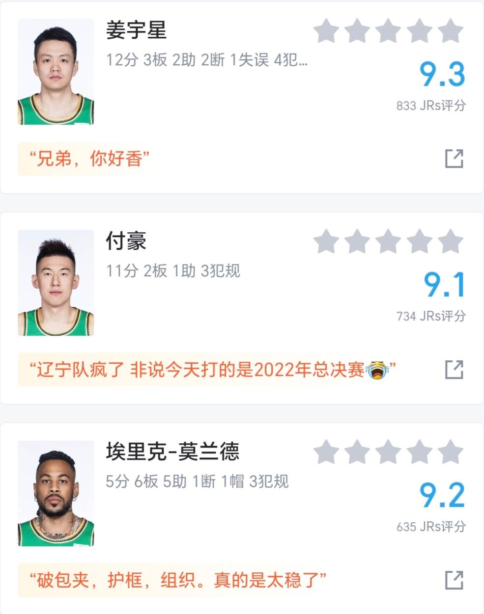 辽宁破广厦,上演全队篮球+快打旋风! ——点评CBA第二轮辽宁本钢主场大胜浙江广厦 1.两强相遇勇者胜!辽宁本钢明显是更想赢的一方,卫冕冠军在吃饭睡觉打辽宁成为一种习惯后,终于为自己的轻敌买了单!不可否认今天辽宁的进攻效率确实神挡杀神,但是广厦的包夹+联防也不是破不了2.0版辽宁的进攻组织,只能说这只辽宁只要状态好,具备个人解决问题的后场球员也不少,起码这场就有3个! 2.40分钟的比赛打得就是精锐,而辽宁队5人得分上双,进攻效率极高!先讲后场3将,威尔斯30分7篮板5助攻,把对面后场双煞打得黯然无光!王岚嵚19分,8中5的三分,最后一节连续关键抢断,堪称顶级后卫!姜宇星12分3篮板2助攻,进攻是真硬,太香了! 3.内线付豪+张陈治锋的组合,继上一场出色发挥后,这场打得更好,2人打出了极高的进攻效率,合砍21分!张陈治锋连续2场拿到10分9板,在卫冕冠军身上再次验货成功,这可假不了! 4.再说莫兰德,这运动能力和默契程度,堪比辽宁的罗德曼,5分6篮板5助攻,化身全能战士!布朗虽然只得2分,但也是100%命中率,这6个助攻比得分更值钱! 5.也许有人会说,赢一场球说明不了什么,但李晓旭还打养生球后,这支辽宁队国产球员年龄最大的赵继伟和姜伟泽只有30岁,年轻版的辽宁队,全队篮球+快打旋风的风格已经逐渐显现,希望辽宁队保持敢打敢拼作风,抛开杂念干就完了!