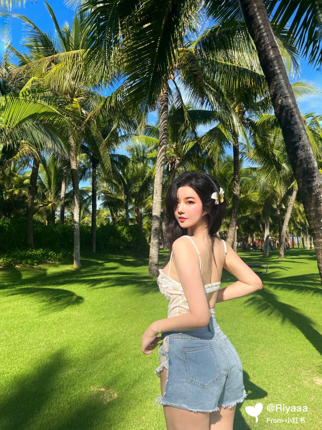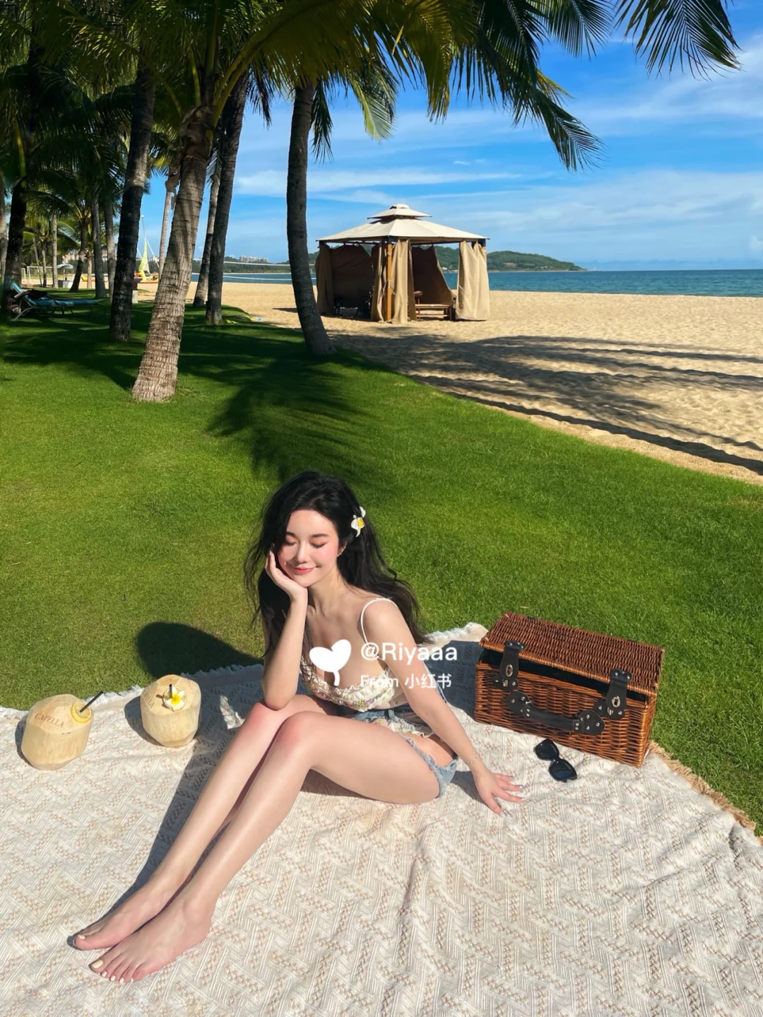 嘉佩乐的私人沙滩非常适合拍照 绿油油的椰树草坪还可以铺个野餐布野餐 但太晒了我们拍完照就收起来了 野餐布和野餐篮都在沙滩上的这个小棚子里 还有一些道具可以用!简直太惊喜了 沙滩上的网球网也是出片神器 仰拍分分钟日本少女写真即视感! - 建议大家下午4点以后来 我直接晒黑了好几个度 太阳太毒了!! - 沙滩旁边就是蓝色泳池 还有小船可以滑 适合亲子活动哦 - 👗穿搭: 连体吊带:Shushutong