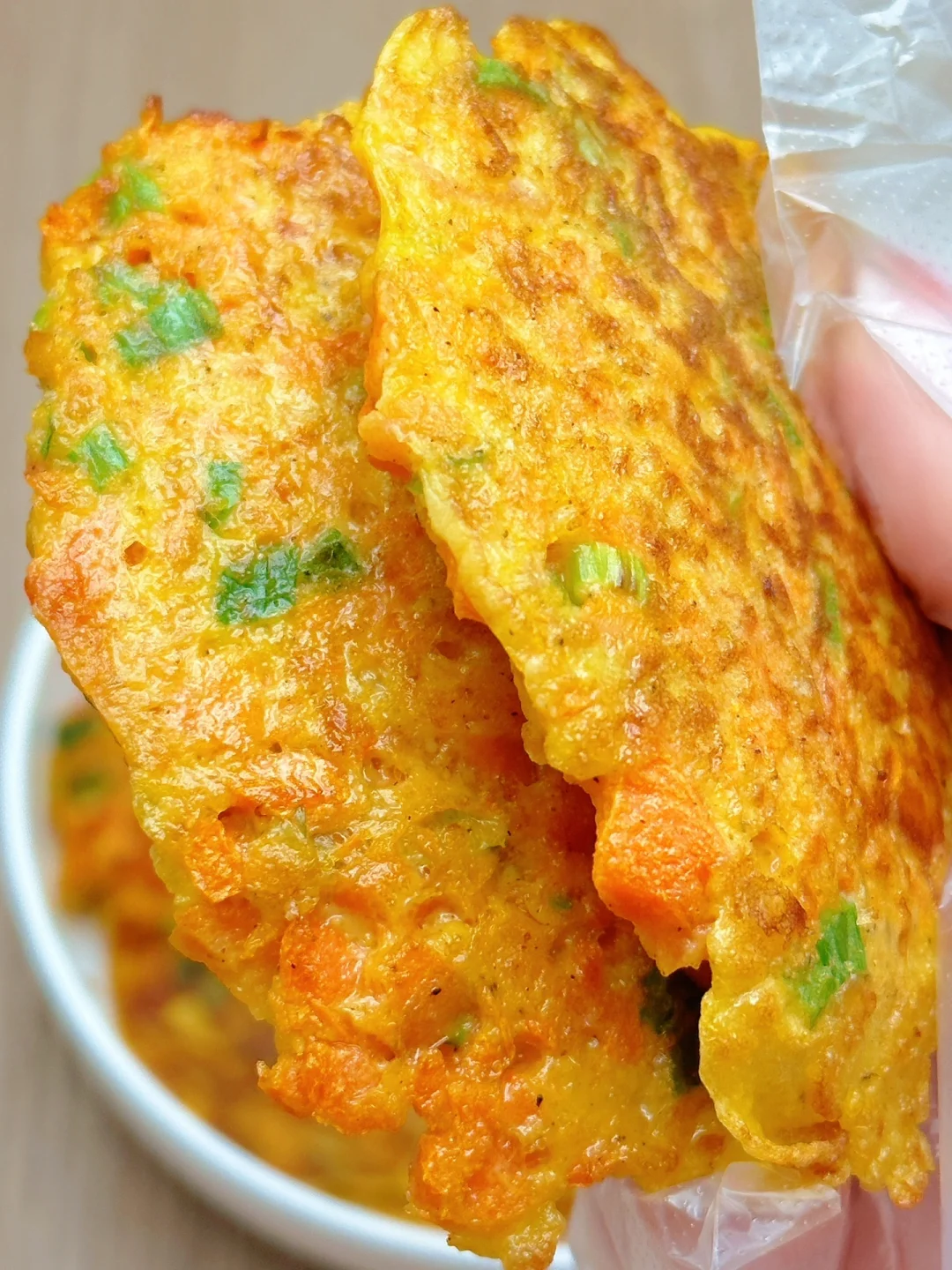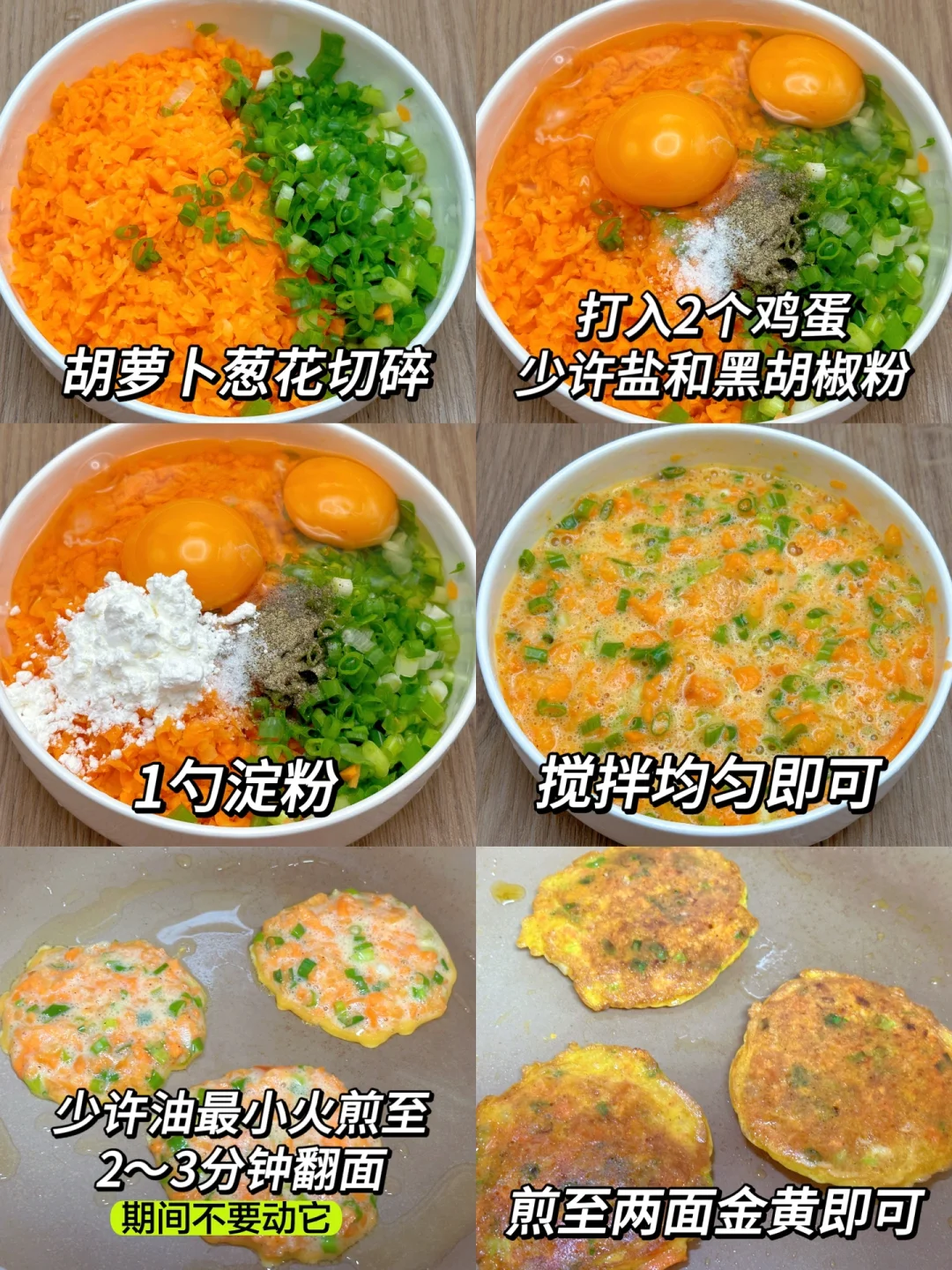 低卡的早餐胡萝卜葱花鸡蛋饼真的泰香了,巨好吃!外焦里嫩,软嫩多汁,真没想到胡萝卜搭配鸡蛋这么香,营养丰富,还有点甜,好吃又饱腹,建议减脂的女孩们把早餐或晚餐都换成这个!一大盘两人份也才300多大卡!一个饼才20大卡,[暗中观察R]减脂期的姐妹们可以放心炫~ [种草R]食材:鸡蛋、胡萝卜、葱花(2~3人份) [种草R]做法:如图所示~ [斜眼R]更多的减脂餐在往期笔记~