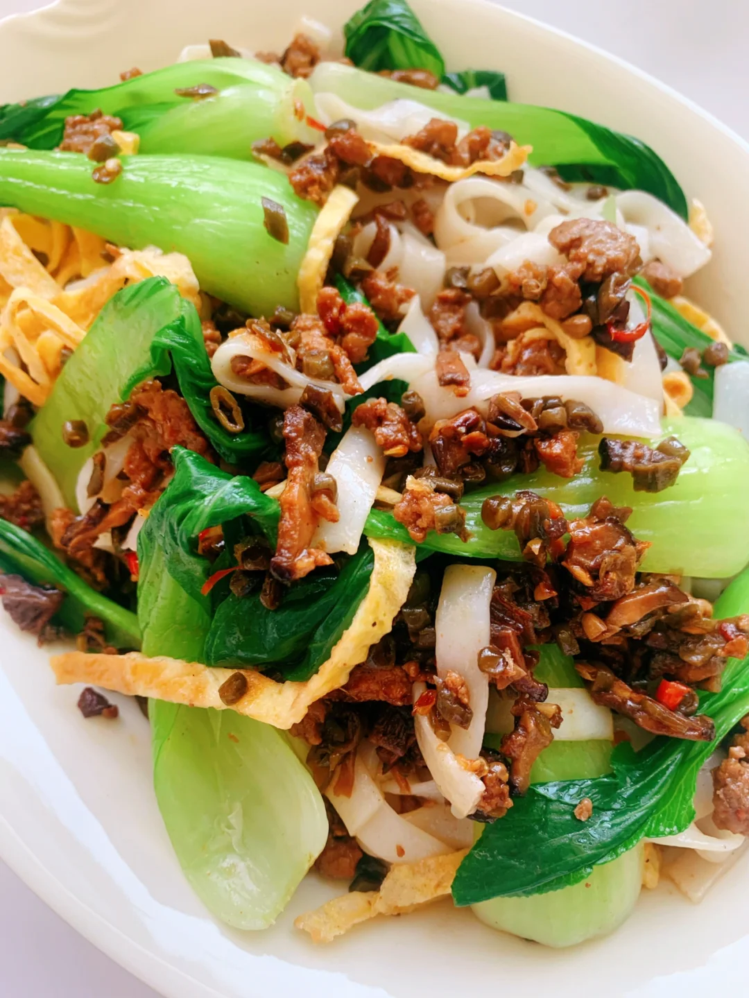 主料:河粉,酸豆角,瘦肉末,香菇,鸡蛋,青菜🥬
