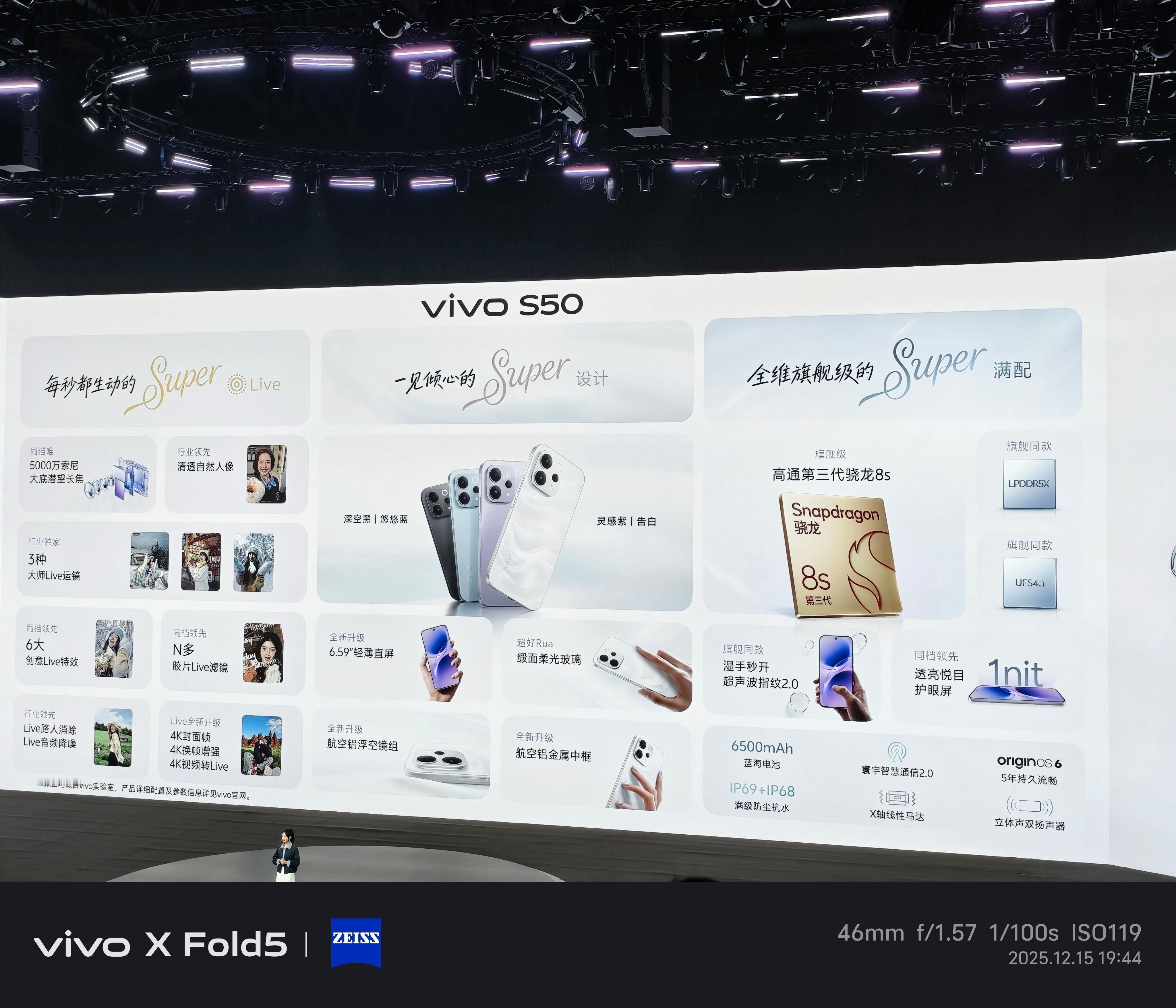 一张图带你们看看vivo S50的外观、硬件和功能。这机器妥妥是小姐姐们手上的绝