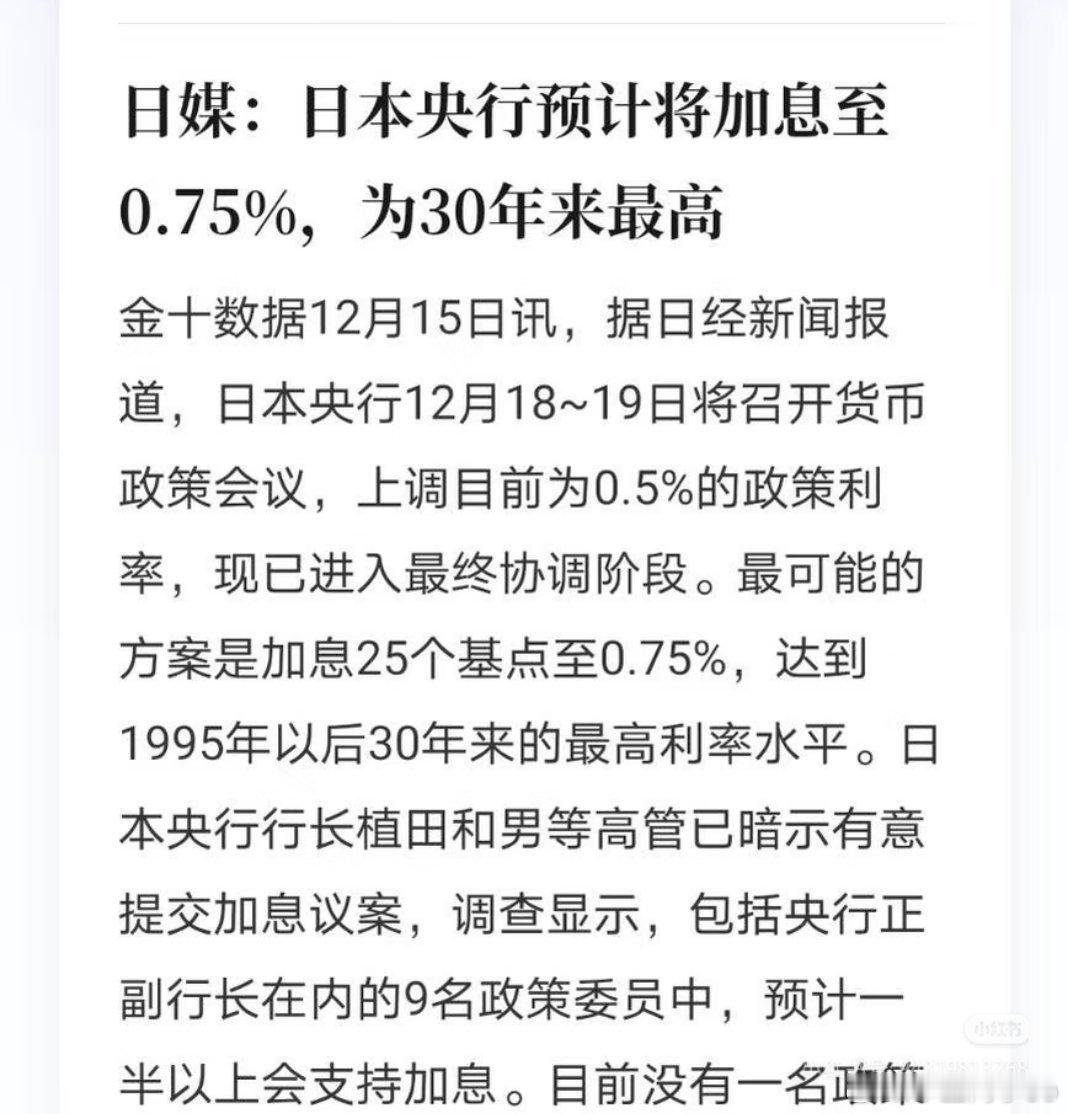 明天能独立行情吗?炸锅了,日本央行 30 年来最猛加息,把利率从 0.5% 干到0.75%!这是 1995 年后 30 年最高