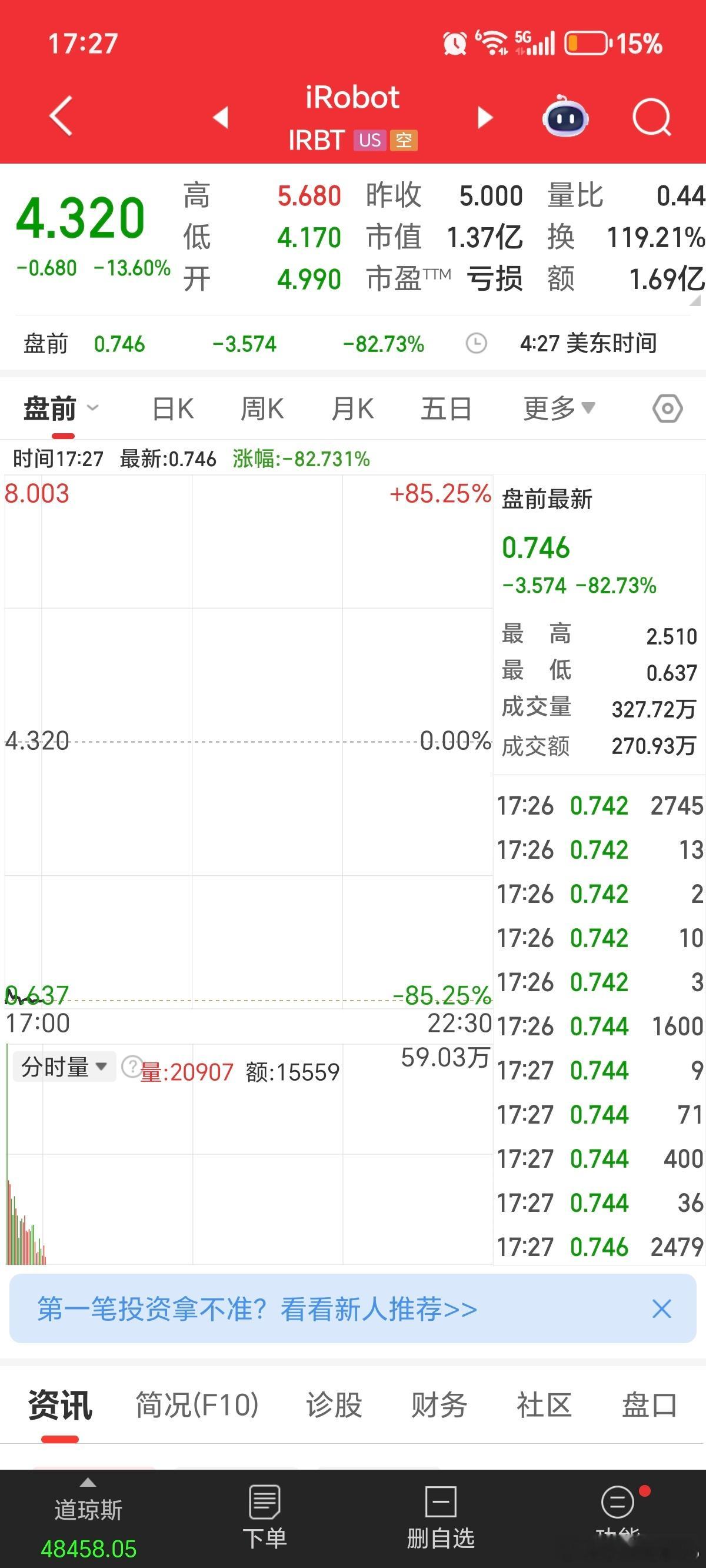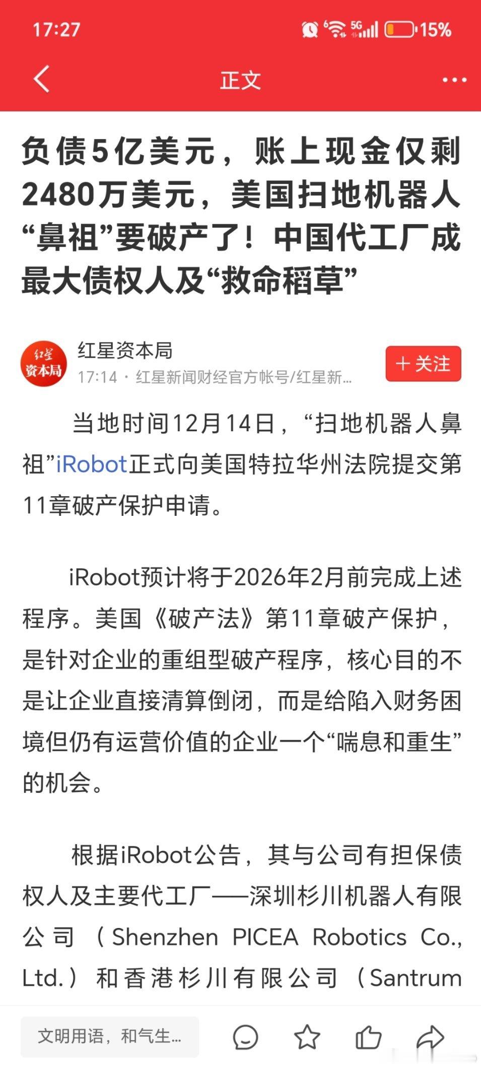 美国的机器人暴雷了,盘前跌了82个点,应该和我们国内机器人没影响吧?