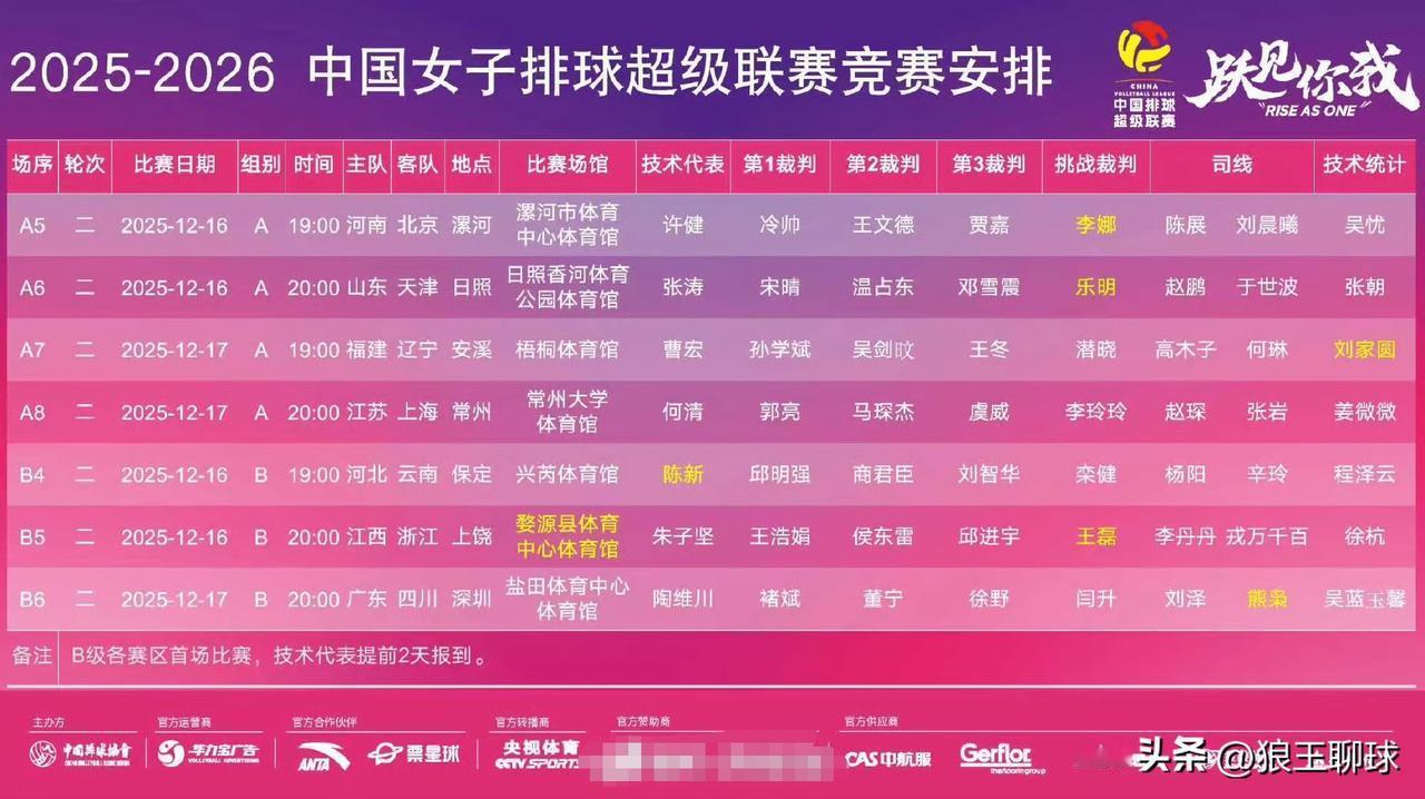 2025-2026中国女排超级联赛A、B级常规赛第2轮今天明天上演。 今晚北京时间19:00河南女排VS北京女排 关注董禹涵是否上场,有怎样的发挥? 今晚北京时间20:00,山东女排VS天津女排 关注路晶、李响、李荣玉是否上场,谁更有潜力? 今晚B级北京时间19:00,河北女排VS云南女排 谁能获胜?比分能打成几比几? 今晚B级北京时间20:00,江西女排VS浙江女排 哪些潜力球员会上场比赛?
