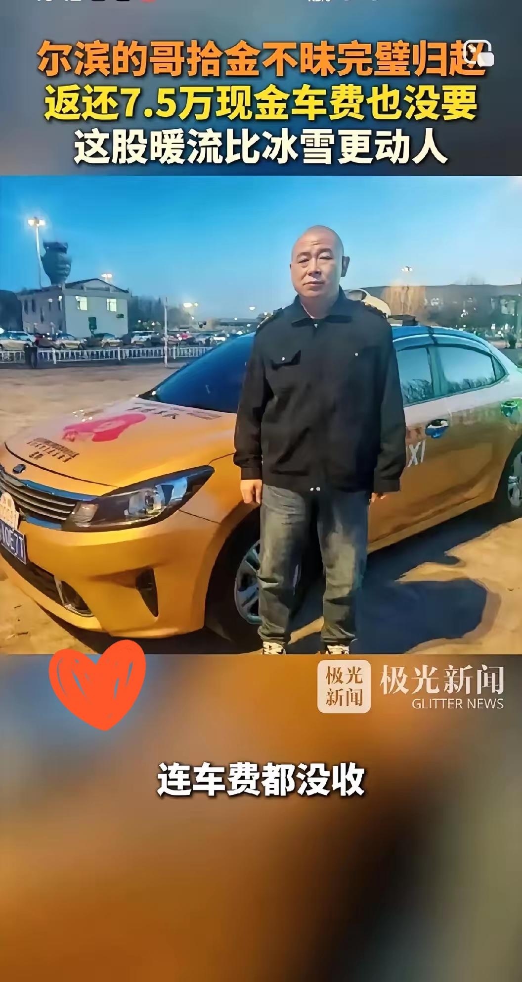 哈尔滨出租司机杜财林还是草率了 不是他发现车里的有7.5万的现金没有还给失主,而是他根本不知道,会钱都忘了拿 ,乘客就走了 。 他跑完全程都没察觉,直到接到失主电话开会中途折返才发现遗失物品,没有丝毫犹豫立马送回机场。 更让人动容的是,失主递来的感谢费坚决不收,连来回油费都分文不取,一句简单的“该做的”藏着太多赤诚。 其实真正的善良从不是刻意表现,而是面对意外之财时的本能坚守。 杜师傅不是不缺钱,只是他守住了比金钱更贵重的底线,这份不贪不取的坦荡,比任何华丽辞藻都有力量。 当下太多人被利益裹挟,总觉得见好就收是常态,可正是这样的普通人,用朴素选择撑起了社会的暖意。 比起物质富足,内心的澄澈才最难得,这份刻在骨子里的诚信从不会过时。你身边见过这样的暖心善举吗?
