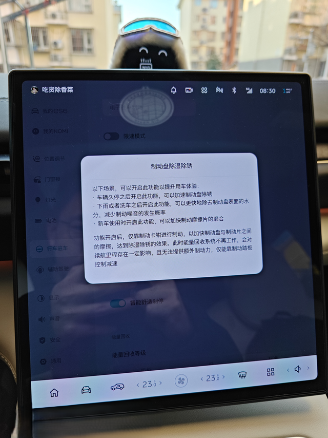 蔚来用车小贴士 大家在洗车、下雨和下雪后有没有感受到在刚踩刹车时有一个刺耳的噪音声,如果有,那么大概率是刹车盘生锈了,电车在行驶过程中很多都是用动能回收代替传动刹车,这也导致了刹车盘使用率变低蔚来在车机设置中选择行车驻车,将制动盘除锈打开,车辆就不会再通过动能回收进行制动,打开之后最好是可以在下坡路在没有妨碍交通的情况下,轻踩几次刹车就达到除锈的目的了,基本上就可以解决噪音的问题了
