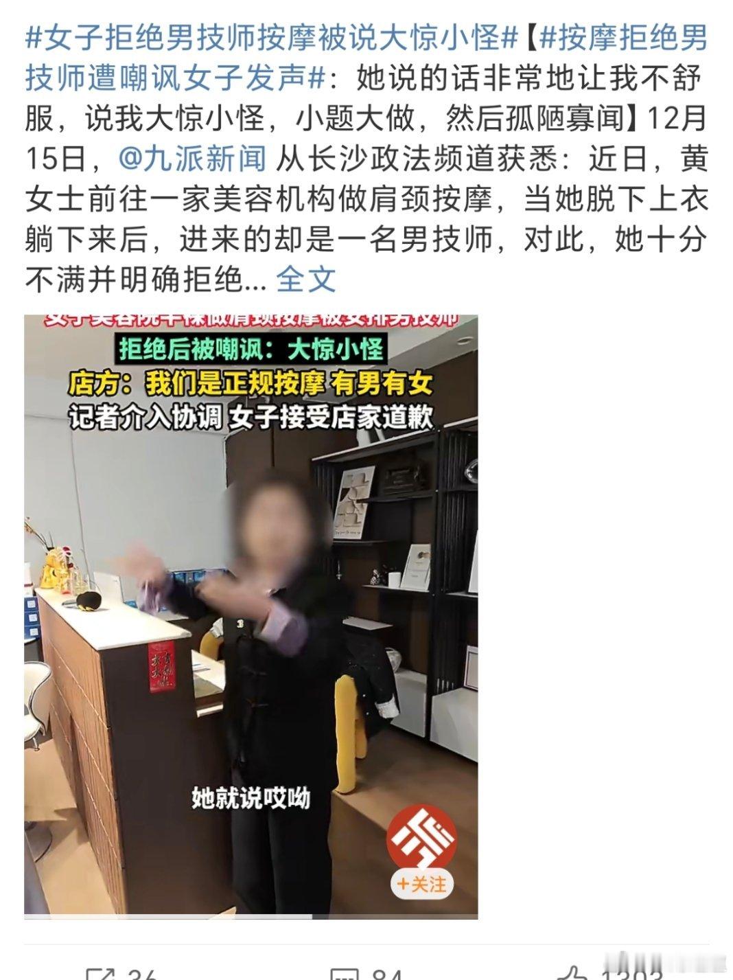 按摩拒绝男技师遭嘲讽女子发声是正经按摩吗?