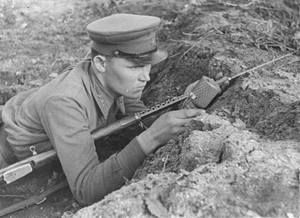 1941 年,卫国战争初期,苏联边防军上士马卡连科在阵地中严阵以待,他装备了一支 7.62 毫米托卡列夫 1940 年式半自动步枪(SVT-40,参见图2),手中还握着一枚 RGD-33 型防御式破片手榴弹(参见图3)。 SVT-40 半自动步枪是苏联在 1940 年定型的半自动步枪(SVT-38的改进型),由设计师托卡列夫主导研发,用于替代莫辛 - 纳甘栓动步枪,提升步兵火力密度。该枪使用 7.62×54mmR 步枪弹,10 发弹匣供弹,有效射程 600 米,最大射速 30 发 / 分钟,全枪长 1.22 米,空重 3.85 公斤。其半自动射击模式在中近距离交火中火力优势明显,但结构复杂、维护要求高,逐渐减产,二战中期后多被莫辛-纳甘 M1891/30 栓动步枪替代。 RGD-33 型破片手榴弹是苏联战前列装的防御型手榴弹,核心用途是阵地防御中杀伤集群步兵。性能参数:全重 500 克,装药量 110 克 TNT,杀伤半径 10-15 米,采用手柄式设计(便于投掷和握持),可通过加装破片套筒提升杀伤范围。该手榴弹优点是安全性好(跌落也不会引爆)、杀伤效果集中;缺点是引信结构复杂,操作繁琐。与德军 M24 木柄手榴弹相比,RGD-33 装药量更少,但破片分布更均匀。 苏联边防军作为前沿防御力量,战争开始时在国境线及周边据点率先与德军突袭部队交火,但因德军兵力、装备优势及突然袭击战术,边防军伤亡惨重,多数阵地很快就被突破。