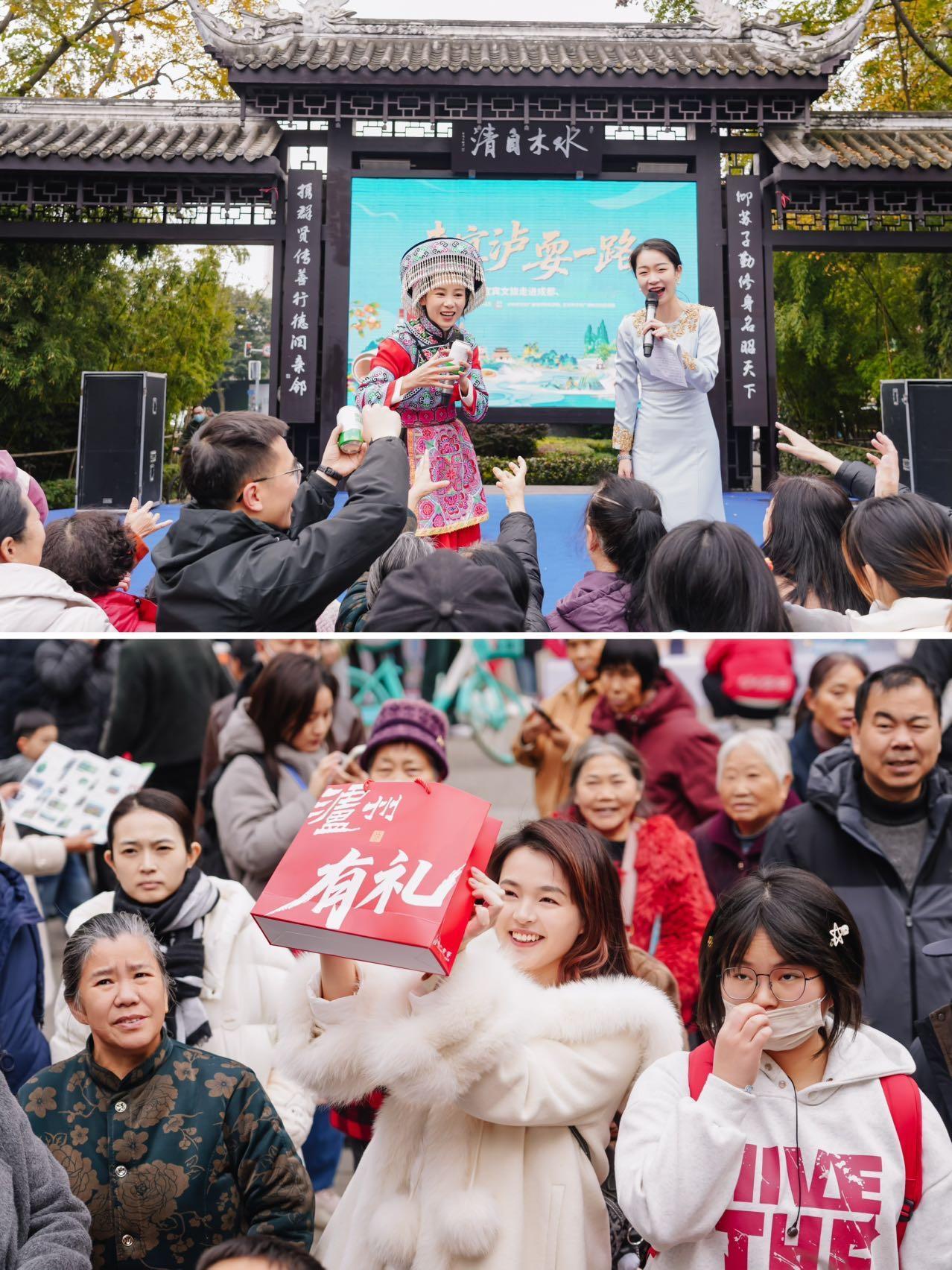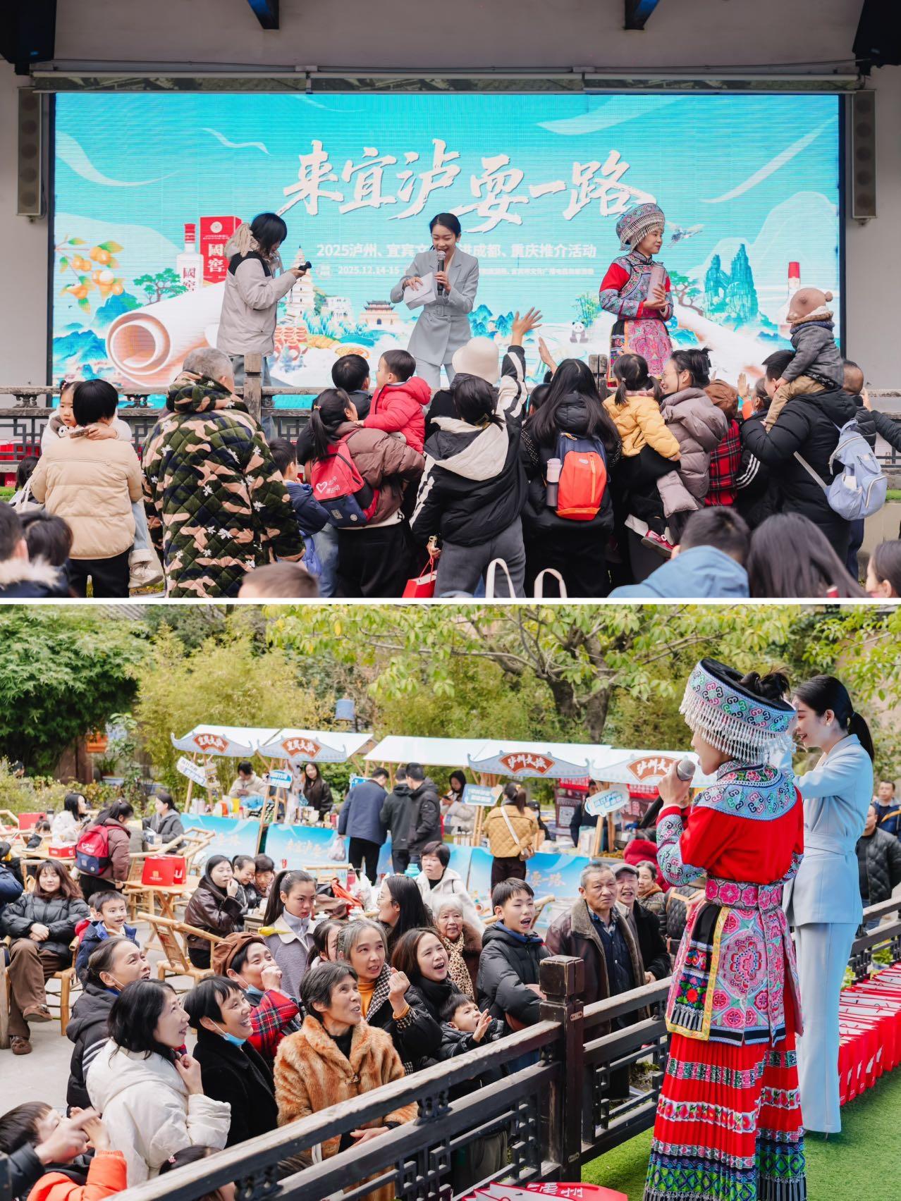 高铁1小时直达!泸州宜宾来成都喊你去耍! 来宜泸,耍一路!泸州文旅、宜宾文旅联合邀您来做客啦! 上周末,泸州和宜宾直接把诗和远方搬到了成都清波和清源社区。现场人潮涌动,泸州的古蔺麻辣鸡、黄粑等吸引着男女老少排队品尝。文创展示区里,泸州的麒麟玖玩偶、杨氏香囊,宜宾的竹娃儿钥匙扣等精致好物也备受青睐。最让人心动的是,这两座充满魅力的城市,都在成都一小时高铁圈内,完美契合周末说走就走的旅行。 首先,让我们漫游酒城泸州,感受其的醇厚魅力。这里推荐两条经典路线: 🔸一是烟火青春之旅,首日可参观泸州老窖博物馆,漫步张坝桂圆林,在凤凰湖边的树蛙部落享受自然;次日探访合江尧坝古镇与先市酱油百年老作坊,体验时光沉淀的技艺。 🔸二是颐养天年之旅,首日从泸州大河街出发,沿沱江骑行,品尝地道白马鸡汤;次日游览泸县宋代石刻博物馆与龙脑桥,感受历史厚重。 当然,别忘了用味蕾铭记泸州,白糕、合江烤鱼、叙永豆汤面、纳溪泡糖等地道风味,尤其是社区试吃中广受好评的古蔺麻辣鸡,绝对值得专程打卡。关注“酒城乐航音乐节2.0”,将为你的旅程增添更多律动哦。 接着,让我们领略长江首城宜宾的灵动风采。 🔸Citywalk一日精华线:从一碗地道的宜宾燃面开始,漫步冠英古街,在长江零公里地标广场与红嘴鸥邂逅,再到李庄古镇感受抗战文化,最后于长江音悦街放松身心。 🔸若有两天时间,川南生态休闲游将带你深入蜀南竹海的碧波与兴文石海的奇观,次日再访李庄,并参观五粮液景区,品味大国浓香。 宜宾的美食同样精彩,李庄白肉、双河凉糕、筠连椒麻鸡等。 一小时高铁,就能从蓉城的烟火走向酒城的醇香与长江的壮阔。来宜泸,耍一路,这个周末,期待与你相遇!