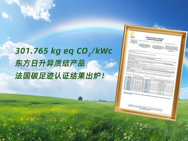近日,东方日升宣布伏曦系列高效异质结光伏组件成功通过法国权威认证机构Certisolis的碳足迹认证。结果显示该款异质结产品的全生命周期碳排放值仅为301.765kgeqCO₂/kWc,相较于传统组件减碳幅度近19%。