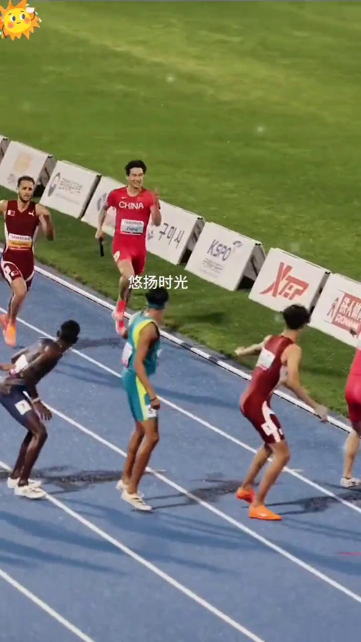 悠扬时光。 2025亚洲田径锦标赛男子4x400米决赛中国队全程回顾。 第一棒梁宝棠。 第二棒张起宁。 第三棒艾力西尔。 第四棒付浩然。