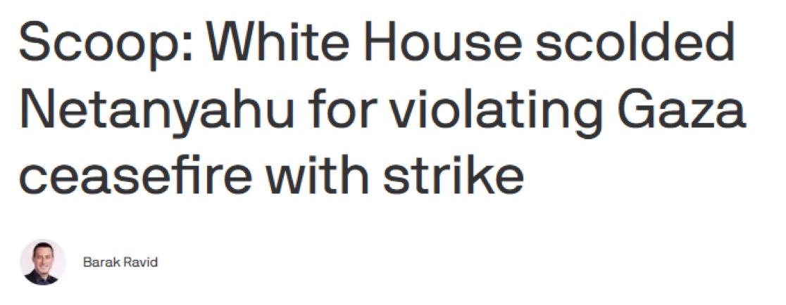 以色列在加沙杀害哈马斯高级指挥官Raed Saad后,白宫私下斥责内塔尼亚胡,称袭击违反了美国怆恿的停火。 白宫警告说,内塔尼亚胡正在破坏停火和特朗普作为停火经纪人的信誉。 以色列在周六没有通知华盛顿的情况下发动了袭击。 来源:Axios