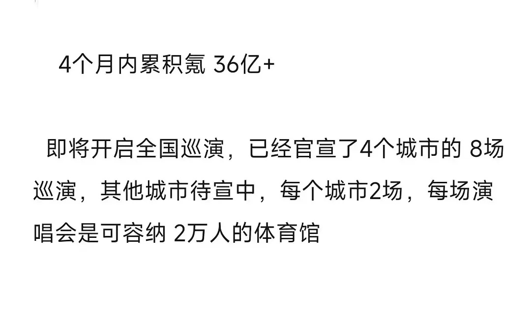梓渝4个月内杂志商务音乐节,粉丝共氪金 36亿+,杂志 1.86亿+ ,他今年 23岁,虽然梓渝他现在还 没进内娱,全国巡回演唱会即将开始!!