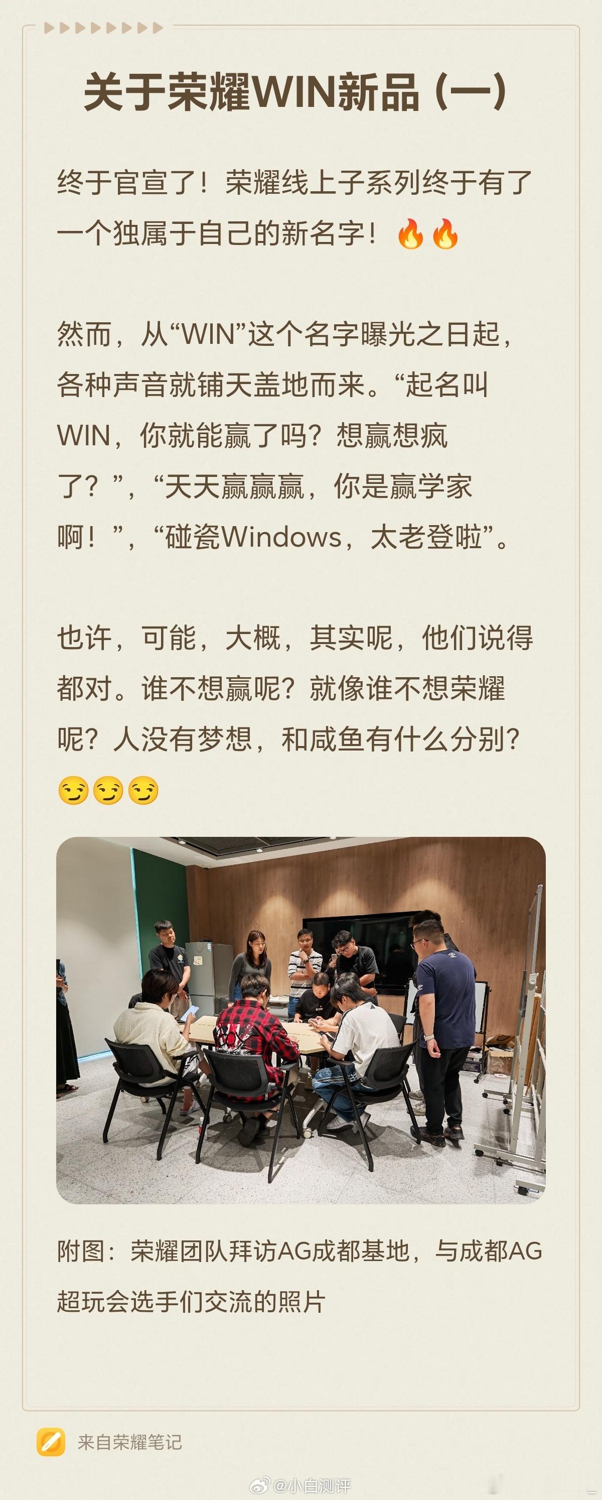 荣耀WIN系列正式官宣,注意是系列,也就意味着有两款产品,WIN这个标志似乎是一