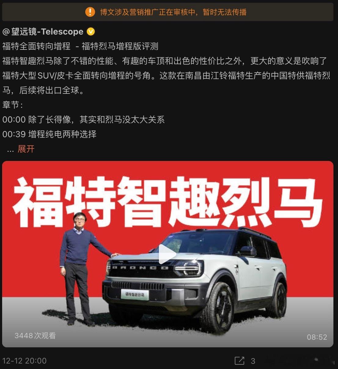 福特刚发了新闻稿要在北美皮卡车型上全面转向增程。但是的观众上周五就知道了。可惜微博又夹了。Range说