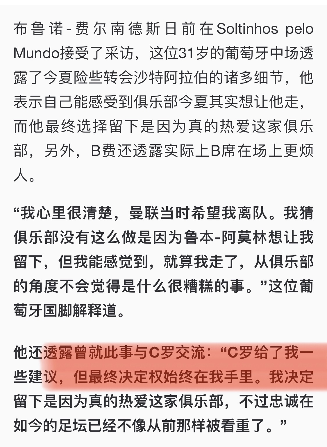 B费这是在说之前罗让他离开曼联,但他重情义不愿意离开?!!