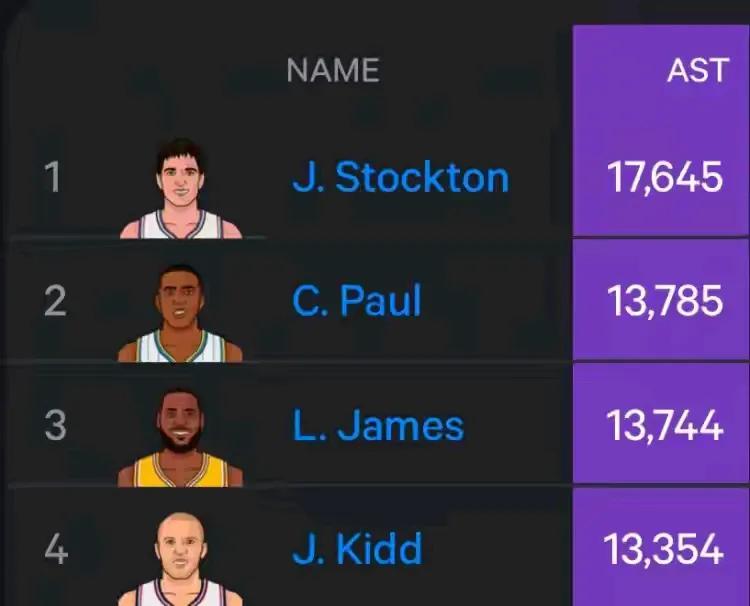 库里生涯助攻数不到詹姆斯一半,被誉为控卫之神的保罗将在本赛季被詹姆斯超越! 据美媒Witness King James报道詹姆斯生涯常规赛+季后赛总助攻数数据。 詹姆斯生涯至今常规赛+季后赛总助攻数为13744次,距离超越历史第二的保罗(13785次)仅差42次,由于保罗已经被快船队裁员,即使再有球队接收作为底薪老将机会也不会太多,而詹姆斯作为湖人队主力不出意外的话,詹姆斯将在本赛季超越保罗,荣登NBA助攻榜第二名。生涯总分第一,助攻第二是不是可以做到前无古人后无来者了!NBA吐槽大会