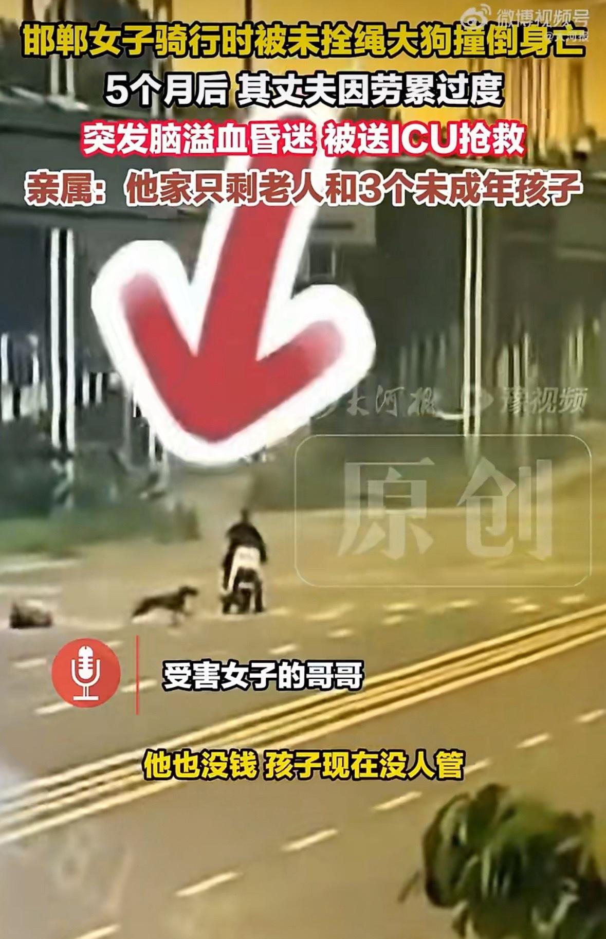 河北邯郸的张女士只是像往常一样骑电动车出门,没招谁没惹谁,突然就被一只没拴绳的大型犬冲出来狠狠撞上,连人带车摔倒后头部着地,就这么没了性命。更让人崩溃的是,这事儿的责任认定还一度来回拉扯,一开始说是交通事故,交警部门又说不归他们管,直到刑警队介入,才以“过失致人死亡”给狗主人立了案。 家里的顶梁柱一下子塌了,张女士的丈夫冯建升只能强忍着丧妻之痛扛下所有。上有两位年迈的老人要安抚,下有三个分别才15岁、13岁、7岁的孩子要照顾,中间还得一次次跑派出所、跑司法部门,为妻子的事维权讨说法,就连妻子的工伤认定都得他一遍遍去对接。五个月来,他没睡过一个安稳觉,精神和身体都被熬到了极限,结果某天回家只说了句“头晕得厉害”,就倒地昏迷不醒,确诊是脑干出血,至今还在ICU里躺着,能不能挺过来都是未知数。 现在这个家彻底垮了,老父亲整夜睡不着觉,一边担心儿子没钱治病丢了命,一边害怕三个孙辈没人管,最后沦为孤儿。家里本来就有外债,没什么积蓄,老人靠种地那点微薄收入根本撑不起ICU的高额费用,更别说三个孩子的生活和学费。而张女士的案子还在检察院审理,现在连维权的人都倒下了,只能靠亲戚帮忙盯着。 多少人养狗只图自己开心,把“遛狗拴绳”的规定当耳旁风,总觉得“我的狗不咬人”,可一旦出事,毁掉的就是别人的整个家庭。以前不少地方对违规养犬也就是罚点钱,违法成本太低,根本起不到震慑作用,直到新的治安管理处罚法要实施,才明确遛狗不拴绳伤人可能要拘留,可这样的规定要是早落实、早严格执行,是不是就能少些悲剧? 更让人无奈的是,各地对禁养犬种、养犬规范的标准不统一,执法也没形成合力,有时候出事了都不知道该找哪个部门。养犬从来都不是个人的小事,而是关乎公共安全的大事,你图一时方便不拴绳,付出的可能是别人的生命代价。这个邯郸家庭的遭遇不是个例,这些年全国各地的犬只伤人事件就没断过,每次都是悲剧发生了才引发关注,可过后还是有人心存侥幸。 真的希望这次的事能真正敲响警钟,不仅要让违规养犬人付出该有的代价,更要把养犬管理的漏洞补起来,让“拴绳”“禁养烈性犬”这些规定真正落到实处。不知道大家怎么看?你身边有没有遛狗不拴绳的情况?对于规范养犬,你觉得还有哪些该改进的地方? 来源:大河报