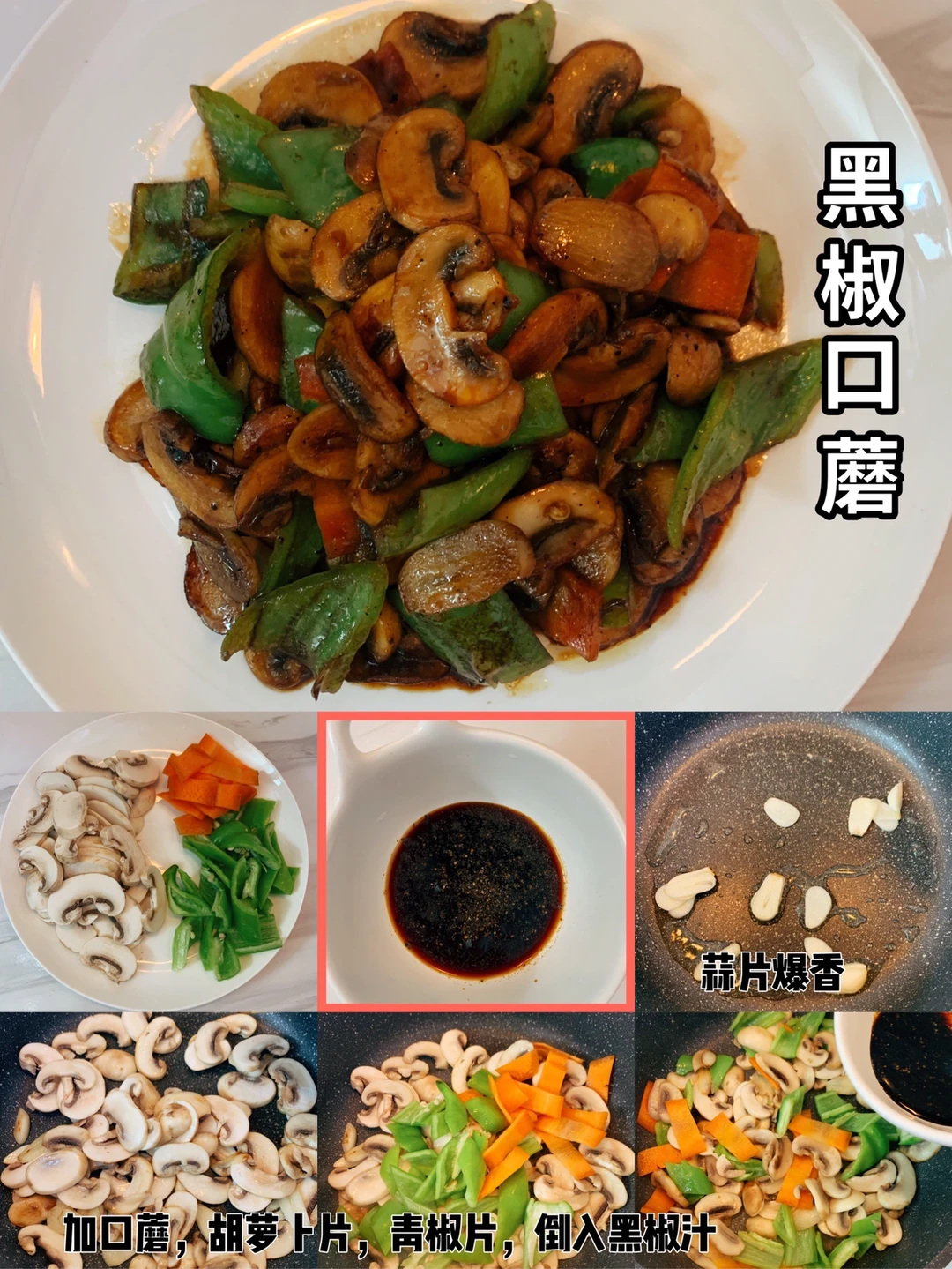 ♨️做法:口蘑切片,油热加蒜片加入口蘑炒软,倒入黑椒汁翻炒均匀即可。