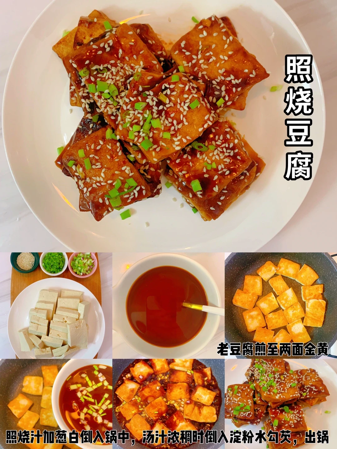 ♨️做法:老豆腐煎至两面金黄,照烧汁加葱白焖煮至豆腐入味(大约三分钟)根据口味加盐,照烧汁本来带咸味,起锅时倒入淀粉水勾芡煮制汤汁浓稠。