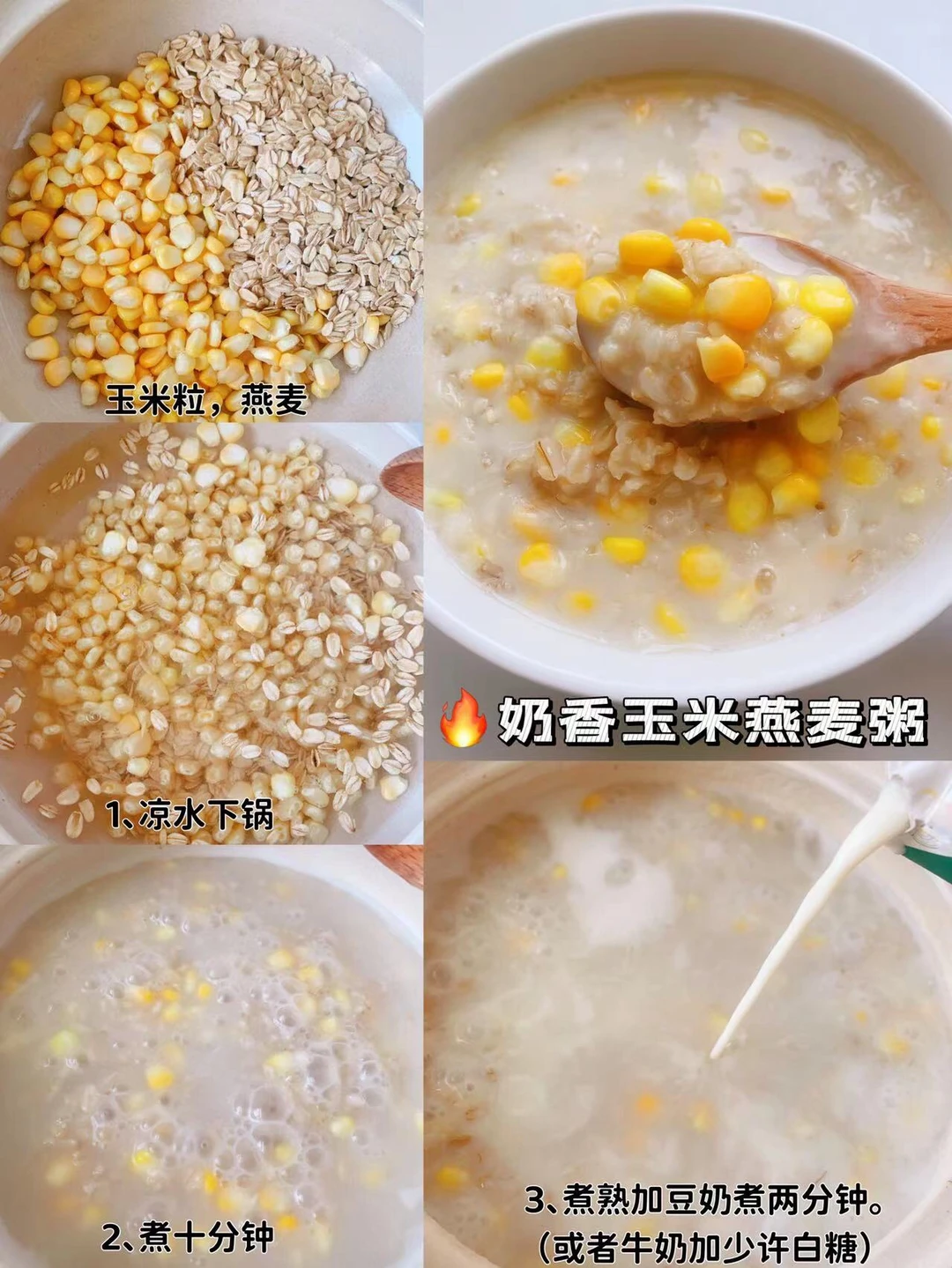 燕麦➕玉米粒➕牛奶(或豆奶)