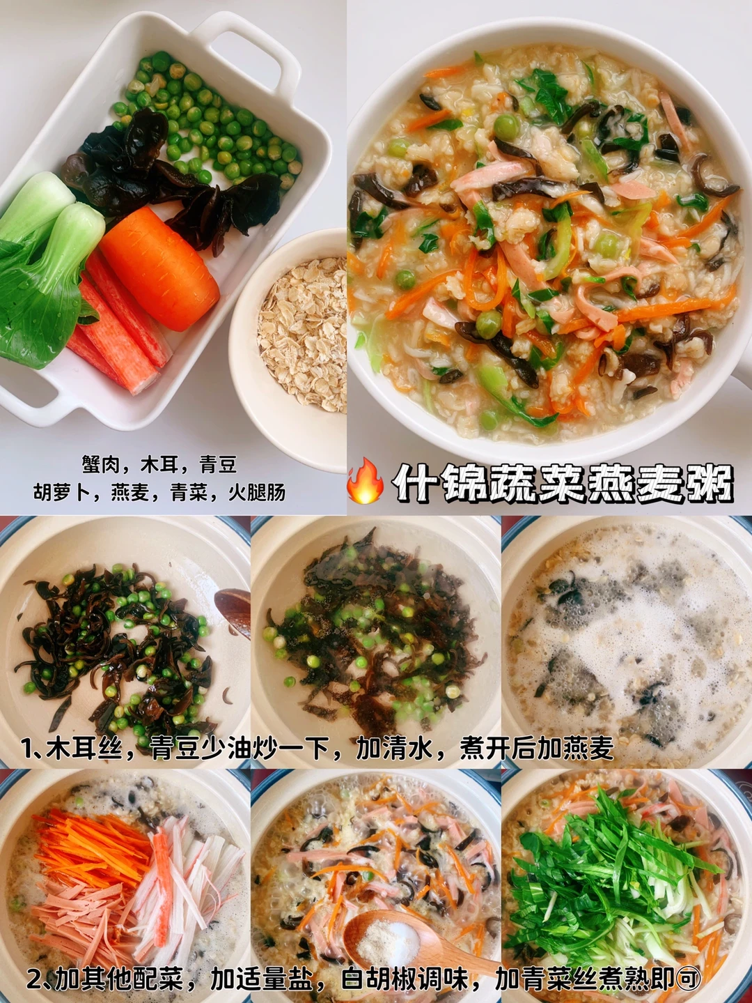 2️⃣根据喜好添加各种蔬菜,可微调一下水量和时间,来控制燕麦粥的浓稠度,不易煮太久⚠️。