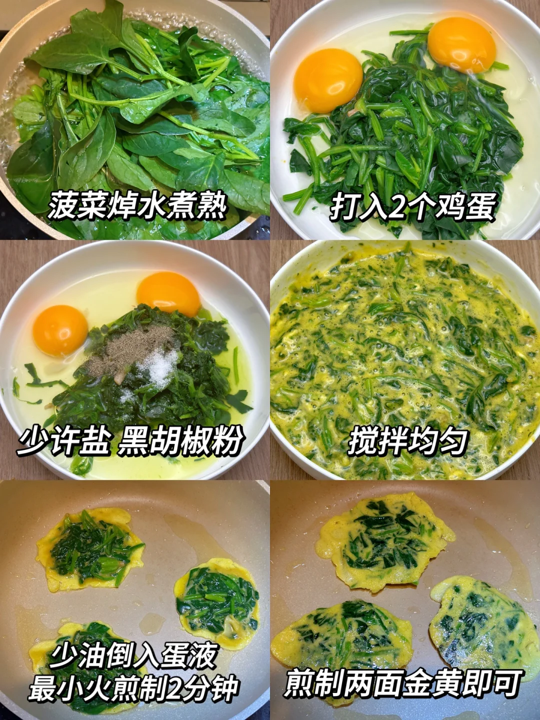 姐妹们,减脂餐一定要试试这个低卡低脂菠菜鸡蛋饼真的泰香了[哇R],好吃又掉秤,营养好吃、补铁补钙,外焦里嫩,真的好吃又掉秤,饱腹还强,做法简单,十分钟就能搞定,姐妹们快去试试!! 🥗食材:鸡蛋、菠菜 🥘做法:如图所示~ 1⃣️菠菜焯水后捞出(切碎)备用 2⃣️碗中打2个鸡蛋打散,加入菠菜和少许盐和黑胡椒粉搅拌均匀 3⃣️锅中少油,放入菠菜鸡蛋煎至两面金黄就可以开吃了