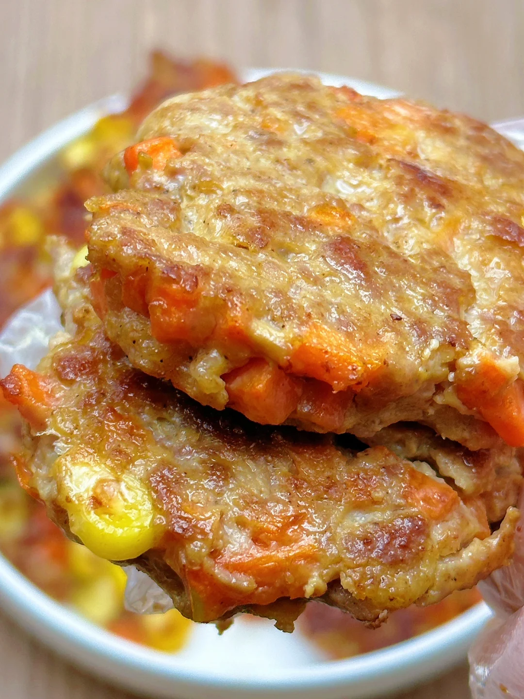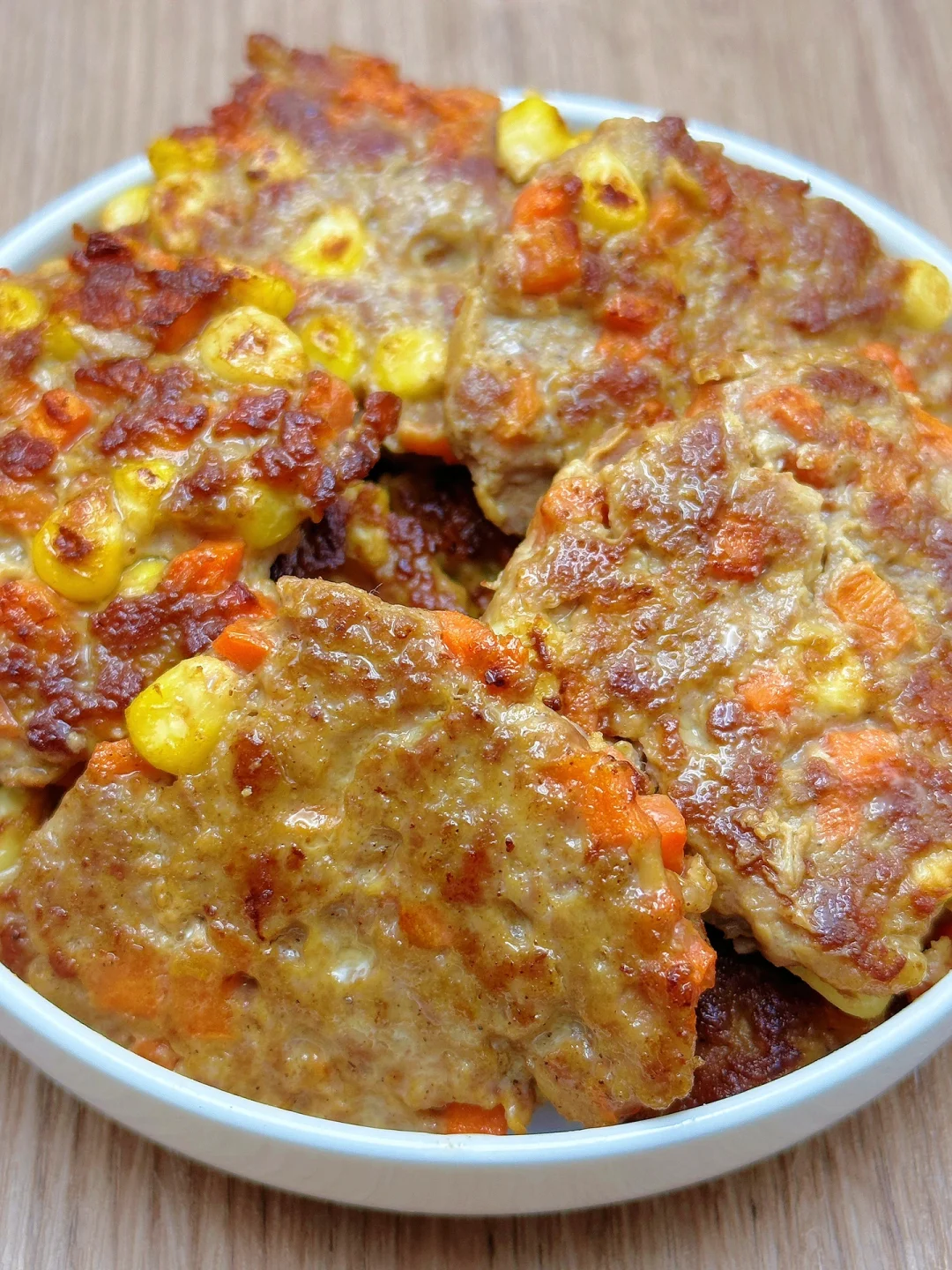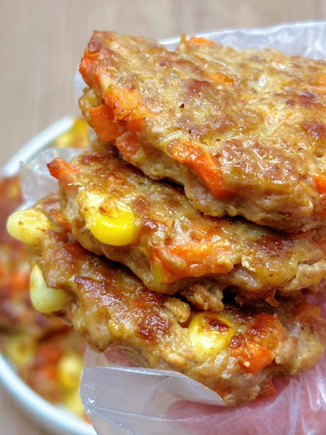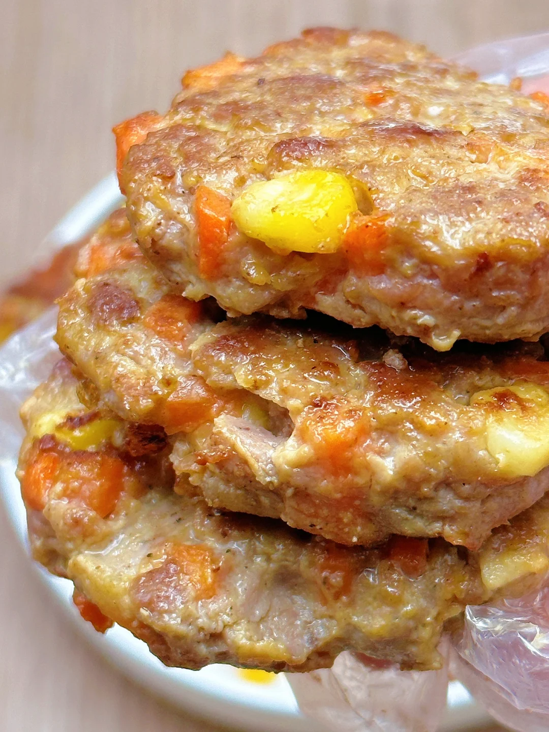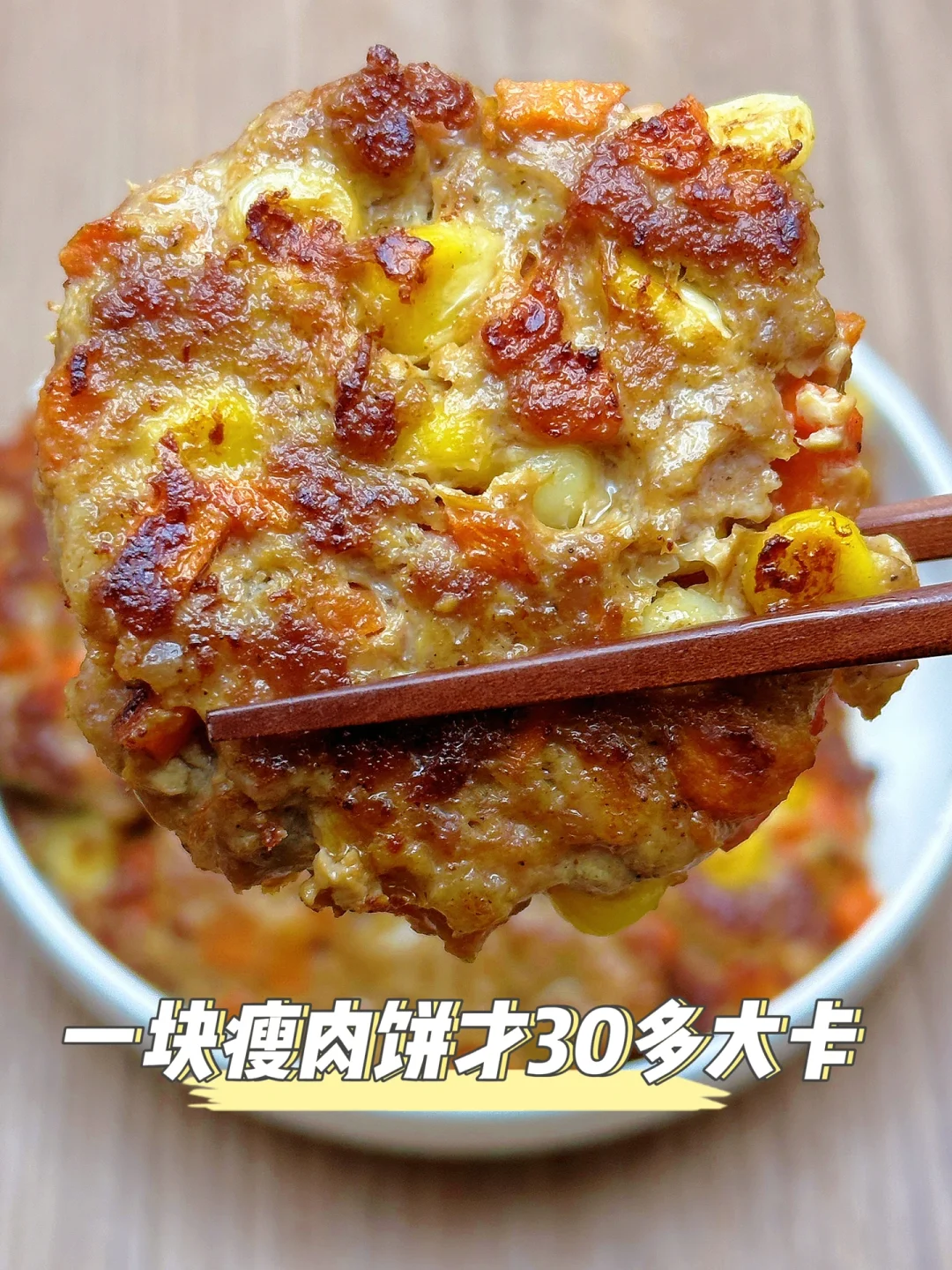 真想把这个肉饼安利给所有减肥的姐妹!!咬一口满嘴肉汁,加了胡萝卜和玉米营养更均衡~减脂的姐妹一定要试试哦!!