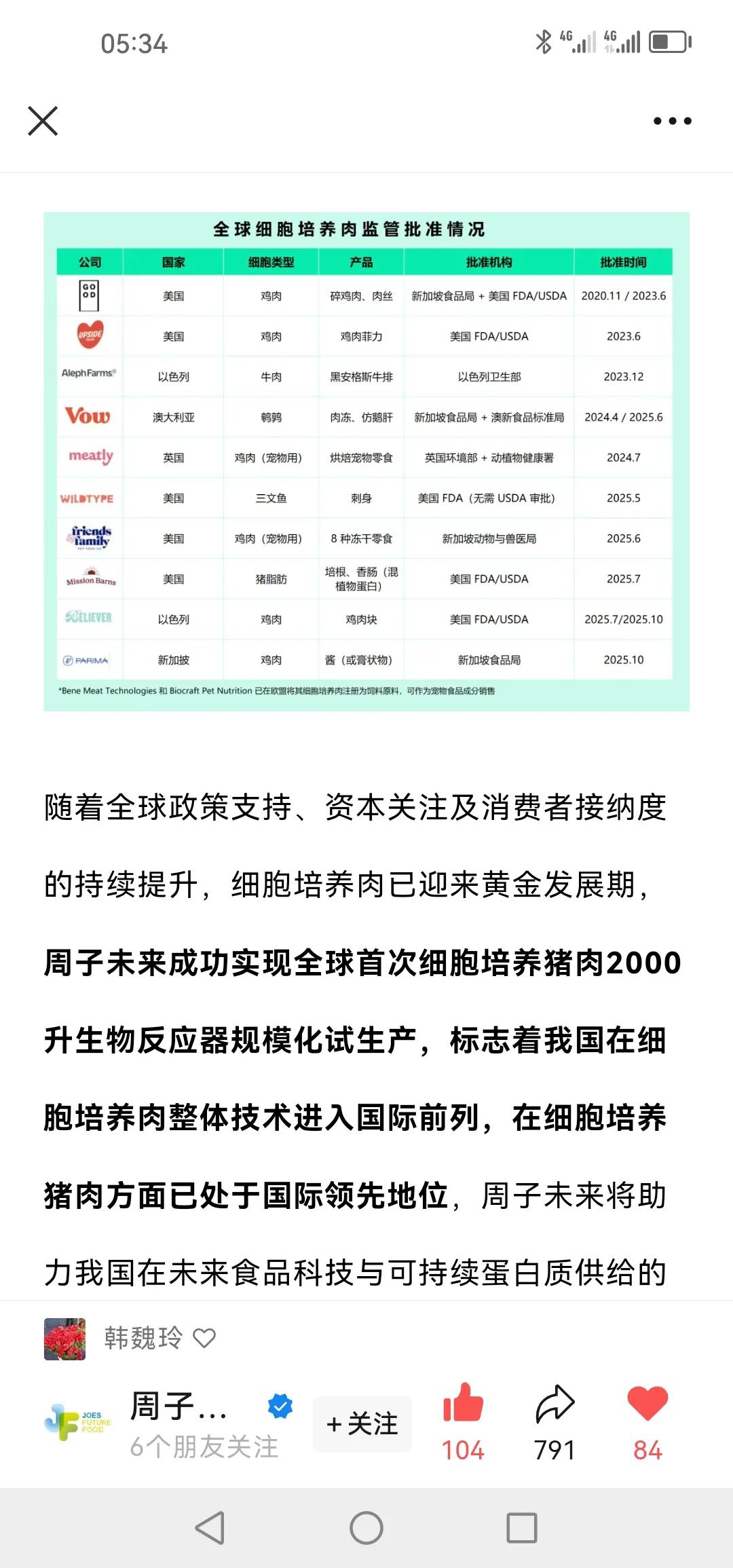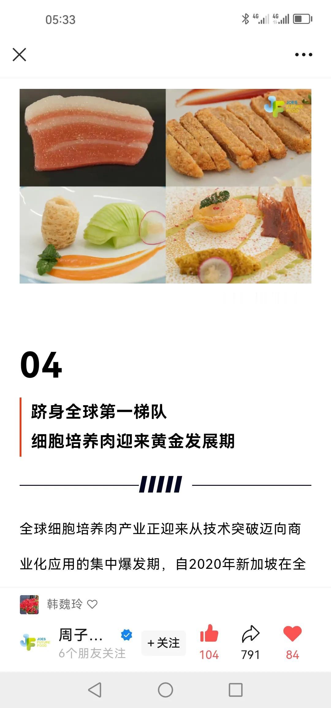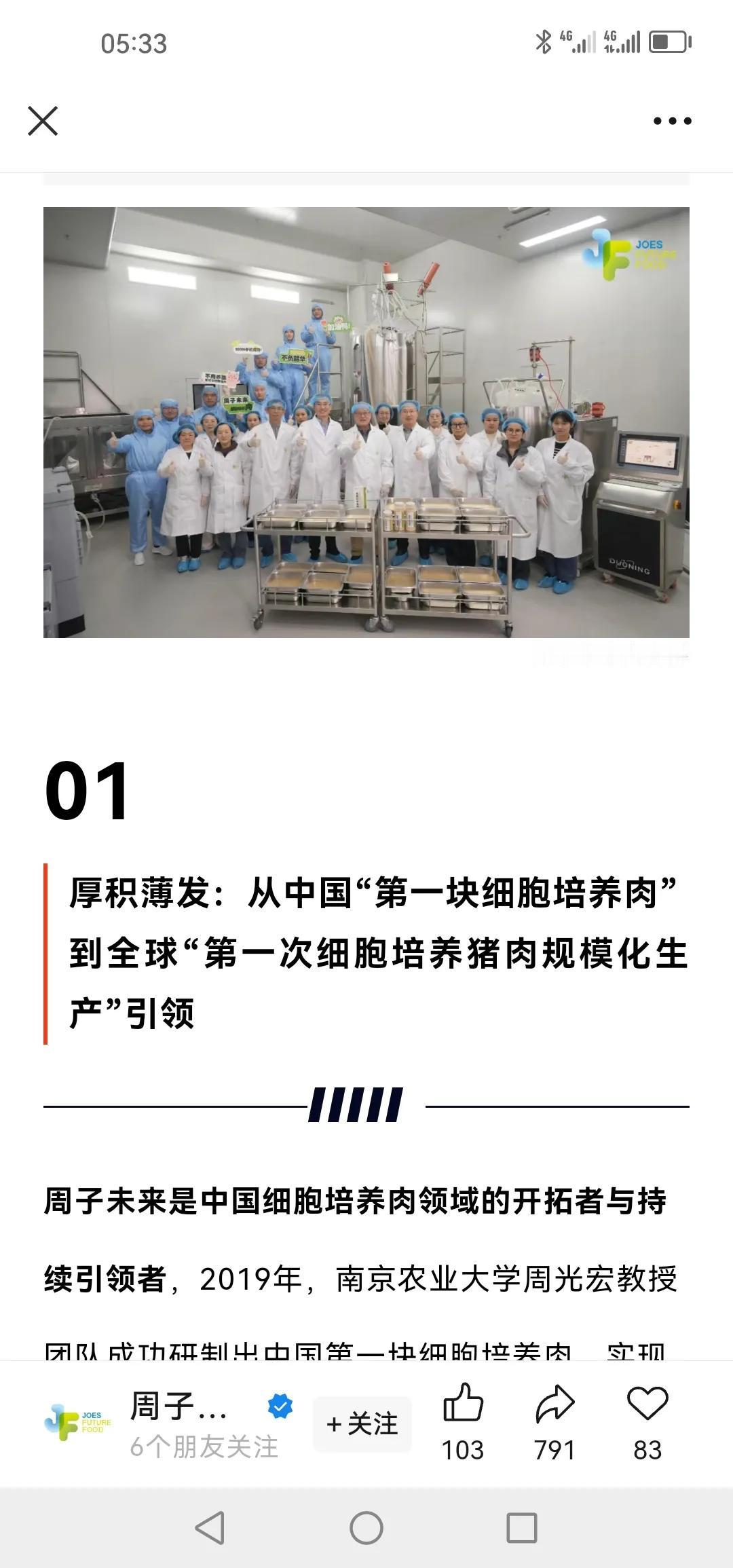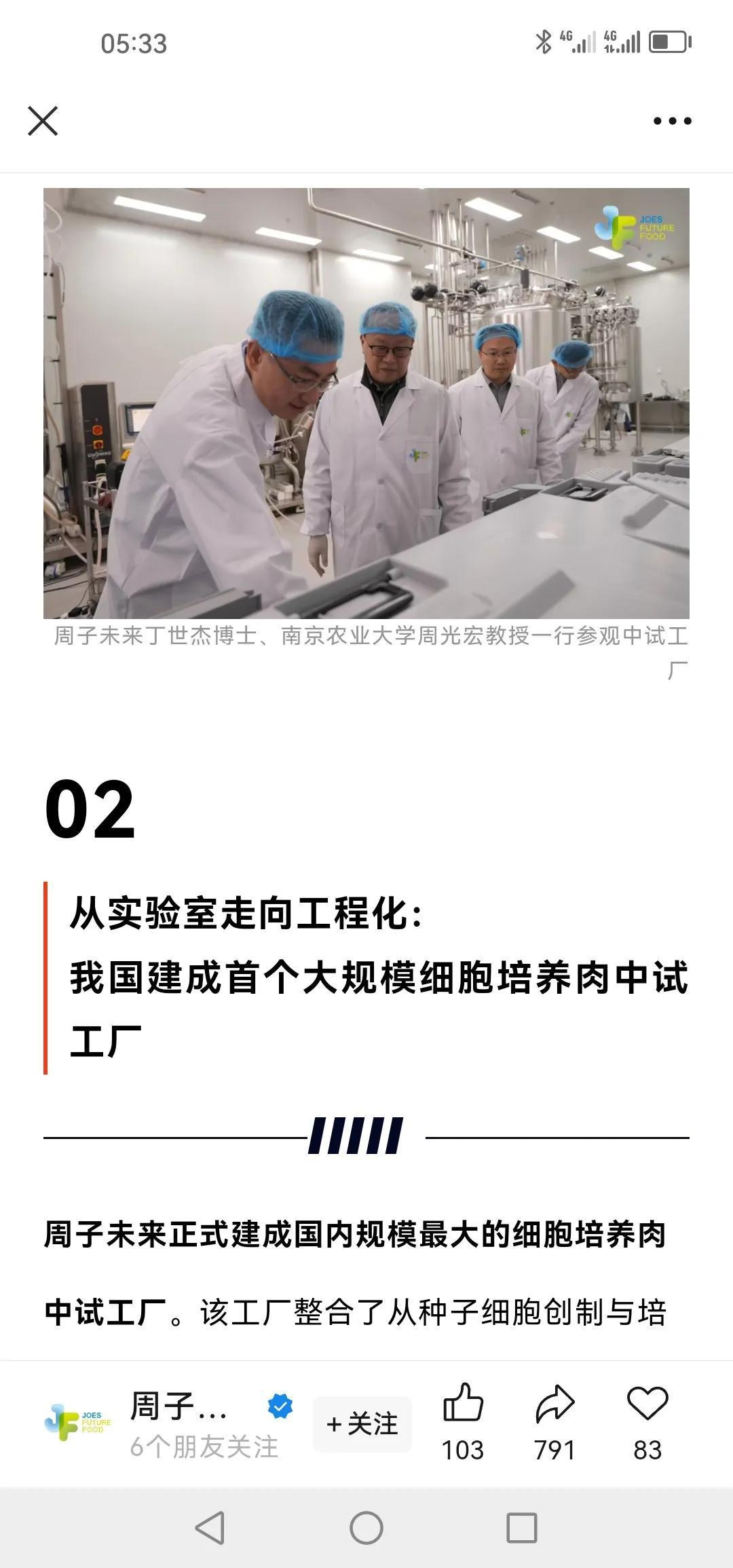 祝贺2025年12月12日我国细胞培养肉产业迎来历史性突破! 南京周子未来食品科技有限公司(简称“周子未来”)正式建成国内规模最大的细胞培养肉中试工厂,完成全球首次2000升生物反应器细胞培养猪肉规模化试生产。这标志着我国细胞培养肉技术正式实现从实验室研发到工程化系统生产的关键跨越,为产业商业化落地及参与全球食品科技竞争奠定了核心基础。未来健康产业 商用人造肉 未来生命科技 中国未来产业 细胞培育肉 未来生物产业 未来食品产业园