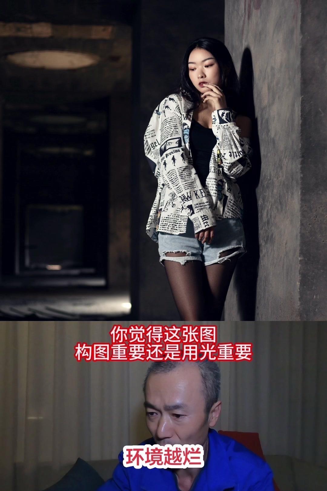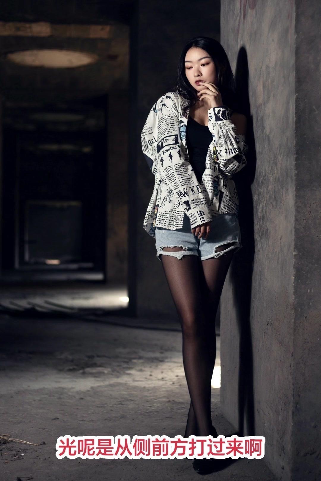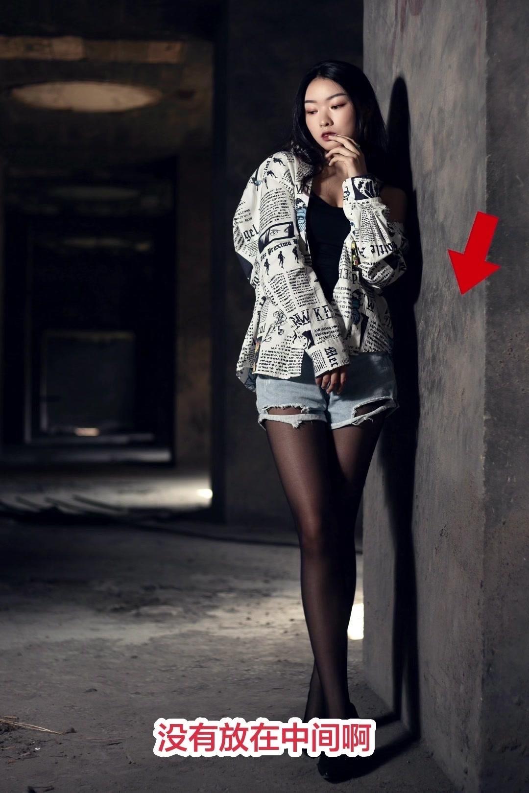 把画面压暗真的很重要,人物亮背景暗,对比感一下子就出来了。人物贴着墙站,不放在正中间,反而把空间让出来,左边留大面积的黑,人物就更突出了。 光从侧前方打过来,只照亮脸和腿,背景完全压暗。这样眼睛里没有多余视线,只能聚焦在人身上,虽然光线看着不柔和,却自带故事感。 后来发现,越是环境普通,用好光效果越惊艳,这大概就是反差的魅力吧。