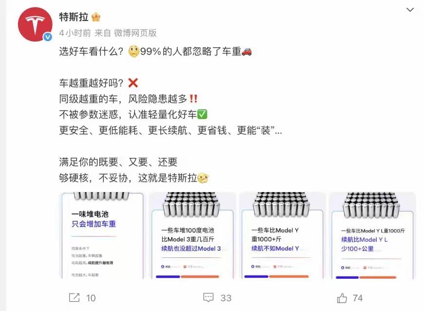 12月15日特斯拉突然在线“开怼”,把新能源圈的“堆料内卷”撕得明明白白,文案狠得像带了电钻,直接戳穿行业套路! 先上特斯拉官方吐槽原话,刀刀见血: “一些堆100度电池的车,比Model 3重几百斤,续航也没超过Model 3”; “更有甚者比Model Y重1000+斤,续航照样不如Model Y”; “飙更高的马力却没更强动力,车身尺寸大了,能装的反而更少了”; 最后还补了句暴击:“电动车盲目堆料,堆出来的是风险;科学减重,才是真硬核科技”! 这波吐槽直接把“大电池=长续航”的神话按在地上摩擦。要知道特斯拉Model 3长续航版才装78.4度电池,整备质量1760kg,CLTC续航却飙到830km;Model Y同款电池容量,续航也有821km,重量才1891kg。反观某些竞品,抱着100度电池当“安全感”,结果车重飙到“吨级PLUS”,电耗跟着飙升,续航却没追上,这不就像背着沉重背包跑步——累得够呛还跑不远? 特斯拉还科普了个扎心真相:车身每减重10%,续航能提升5%-6%;车重每增加500公斤,轮胎寿命直接少20%,刹车距离还得涨5%。说白了,堆大电池不是不行,但没点轻量化技术和能效优化,最后只会造出“移动电池包”:耗电快、操控笨、安全隐患还藏不住。 网友们的评论更是笑不活:“特斯拉:我不堆电池,我只堆嘲讽技能点”“友商:你直接报我身份证号得了”“建议新能源圈开个‘互怼大会’,特斯拉当主持人”。还有人补刀:“买大电池多花的钱,够加两年油了,何必呢”。 其实这场“嘴仗”本质是路线之争:一边是特斯拉押注的“能效为王”,靠0.22超低风阻、轻量化车身抠续航;另一边是部分品牌信奉的“堆料安心”,用大电池缓解用户焦虑。没有绝对优劣,但特斯拉这波“直球吐槽”确实戳中了痛点——买车不是买电池,续航也不是堆出来的,能把小电池玩出高续航,才是真本事。 话说回来,特斯拉都公然“下战书”了,友商会怎么回应?是默默优化技术,还是正面回怼?你站“能效派”还是“堆料派”?评论区来掰头!【来自懂车帝车友圈】