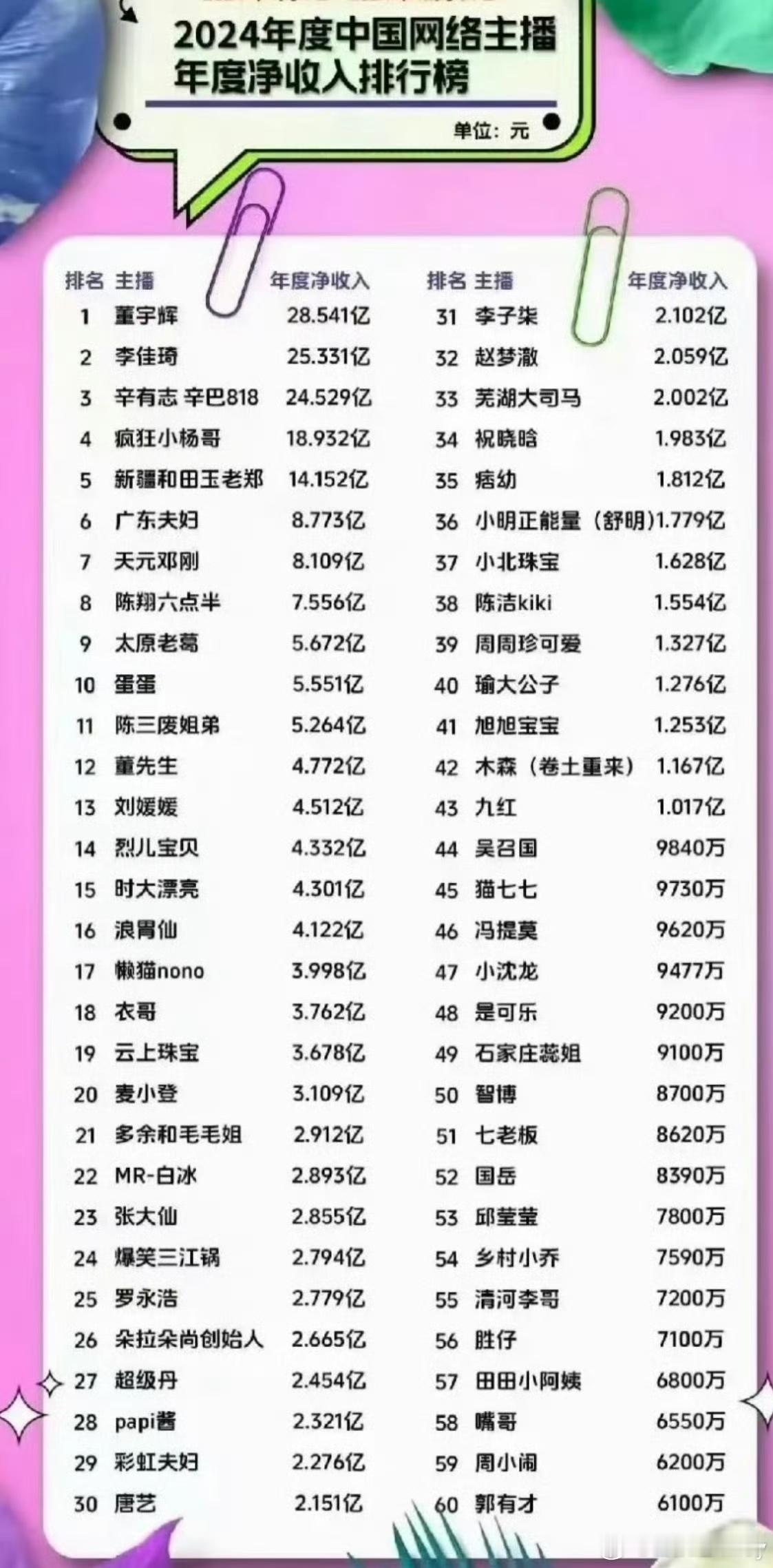 鞠婧祎宣布已是独立艺人原经纪合约约定于2024年6月18日(30周岁生日)自动终止,因丝芭存在伪造签名、签订“双重合同”隐瞒收入、拖欠分成等根本违约行为,已于2024年6月15日发函解约。丝芭则声称2018年签署的补充协议将合约延长至2033年,并单方公布笔迹鉴定称签名真实。所以坐等结果,两方还存在争议。在网上找到一张图,现在网红是真挣钱啊,怪不得好多明星都去带货了,瞬间也不觉得鞠婧祎的1.39亿多了。