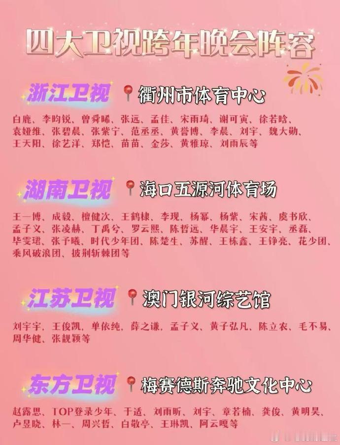 2026四大卫视跨年晚会阵容湖南卫视杀疯了!王鹤棣沈月九年再同台,CP粉直接过