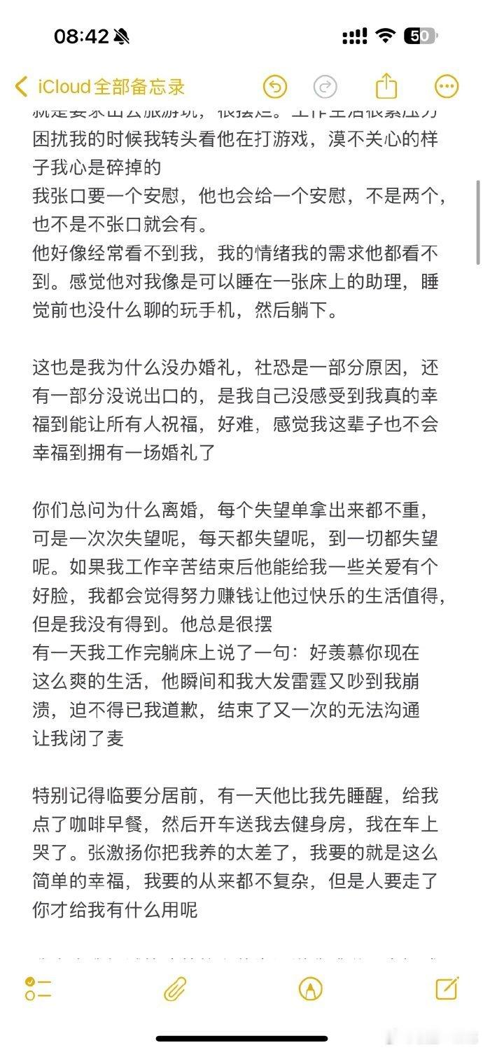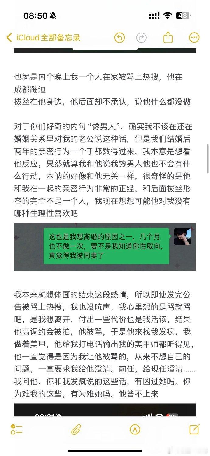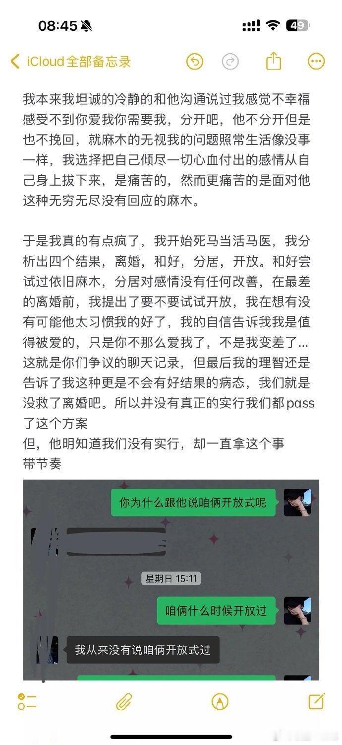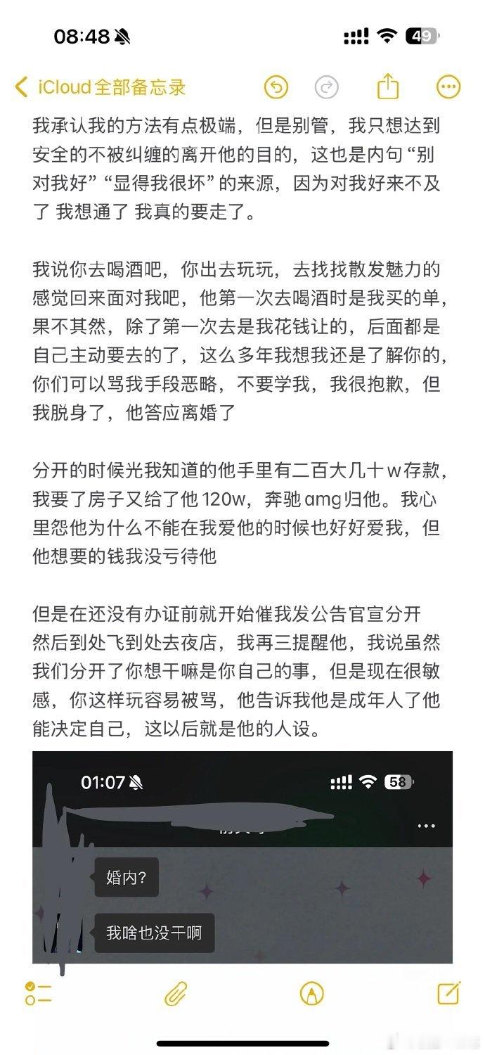 小郑嘻嘻回应前夫张激扬(一天)发布的24张截图,自述婚姻破裂的全过程,婚前全力帮一天打造百万粉丝账号,金钱上倾力支持,控诉对方的情感冷漠、日常摆烂,婚后甩锅自身负面舆论,否认她的帮扶,财产分割时发现车位被登记在对方母亲名下,承认自身部分行为不妥并道歉,因婚姻留下情感创伤,最终希望与对方彻底切割。