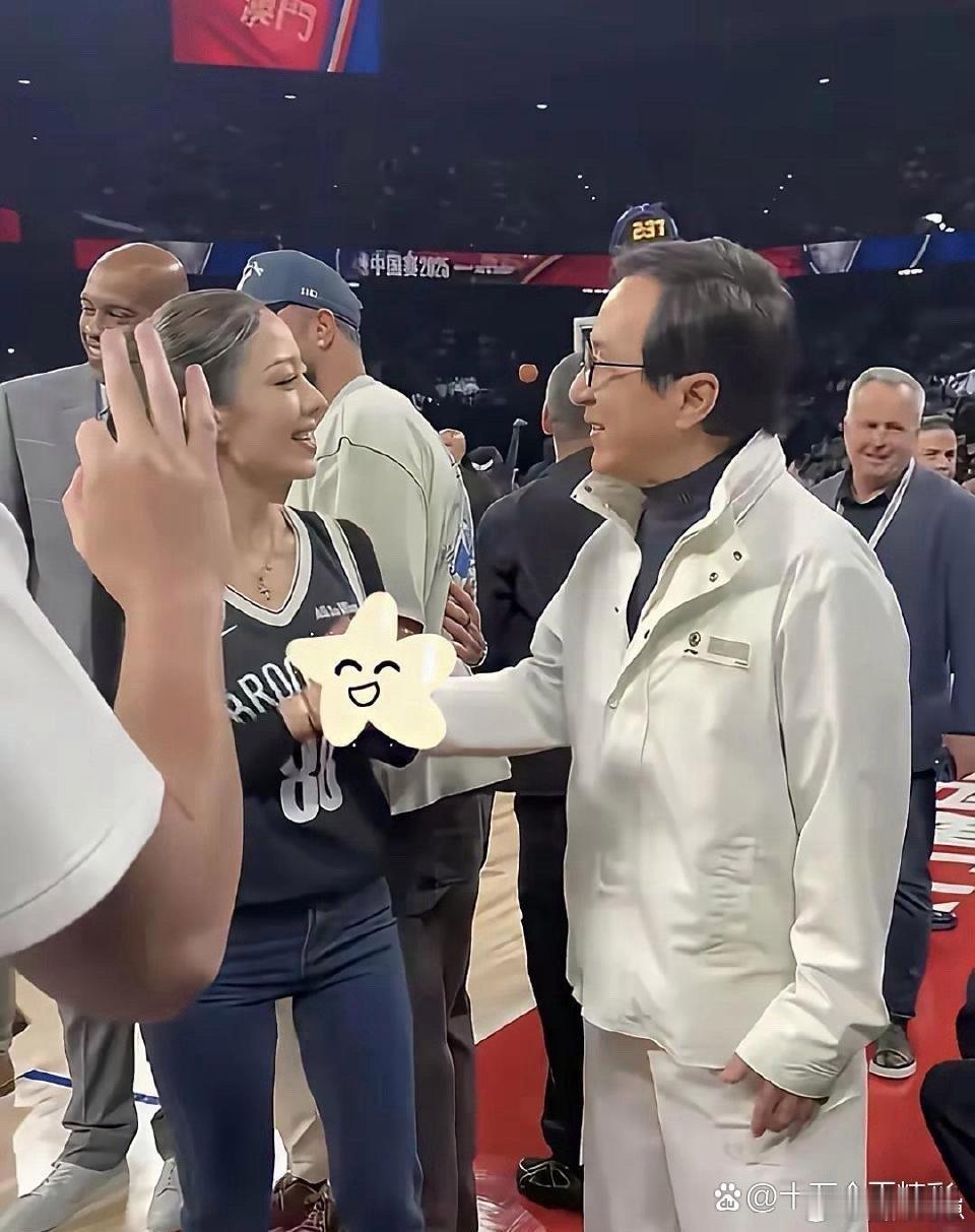 71岁成龙和后辈女星合照,他看起来苍老了好多,白发苍苍,但脸色红润,身材也维持得