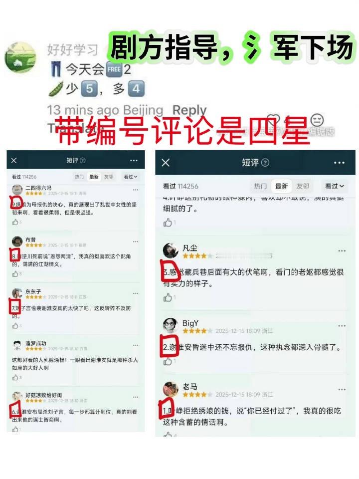 豆瓣这个声明感觉有诈,明明带编号的是四星💦军,它却清理五星的,四星不清?先声明清除了氵军,实际上有没有清完你也不知道,到时候开个虚假高分,你也没啥话可说得了。