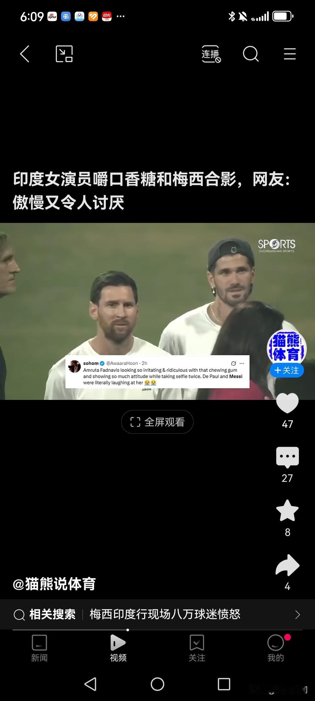 当地时间12月14日,梅西于孟买万克赫德体育场举行粉丝见面会,没想到却被马哈拉施特拉邦首席部长夫人阿姆鲁塔抢去了风头。46岁的她主动上前与梅西自拍,之后便嚼着口香糖、翻看手机径直离开,连一句感谢的话都没说,将梅西晾在了原地。 更为荒唐的是,她折返回来,示意对照片不满意,要求重拍。这一连串举动,让见多识广的梅西也倍感无奈,现场观众嘘声一片。网友们纷纷吐槽她傲慢又惹人厌烦。要知道,大家花大价钱买票入场都难以和梅西同框,她倒好,还挑三拣四,真是自视甚高。