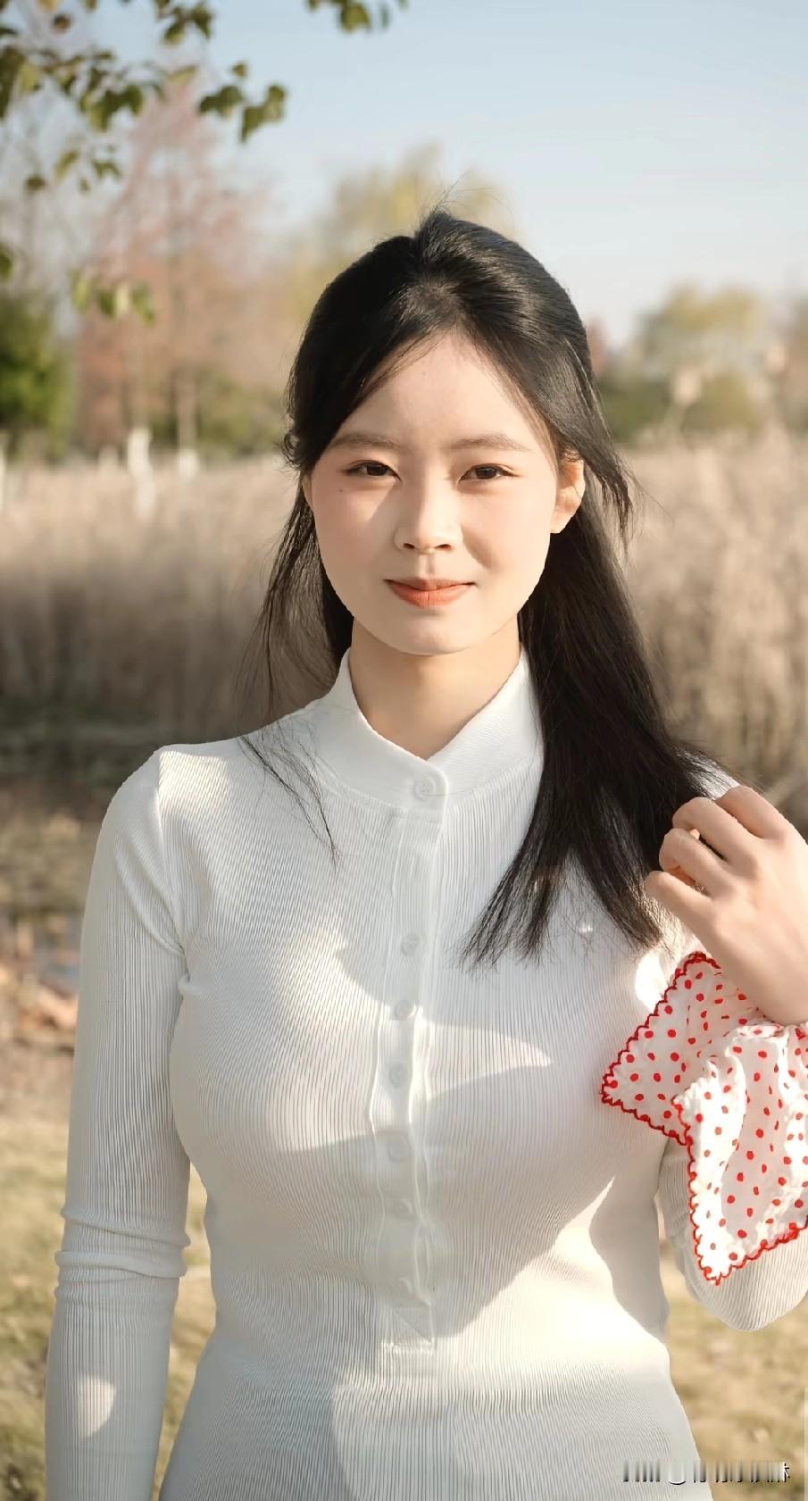 温柔白衬衫少女,甜美微笑,阳光明媚的一天。