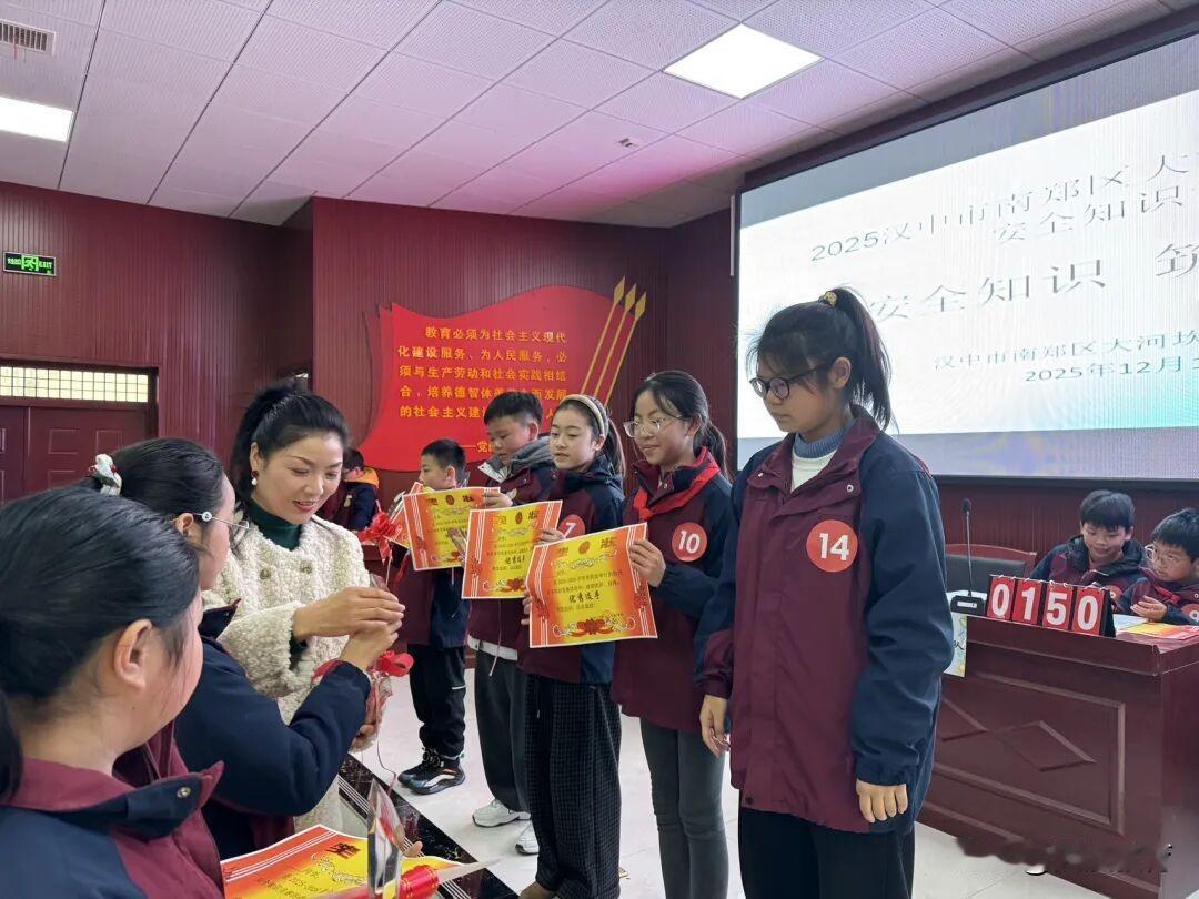 南郑区大河坎九年制学校成功举办安全知识竞赛 为进一步普及安全知识,增强全校师生的安全防范意识与自我保护能力,打造平安和谐校园,大河坎九年制学校于12月成功举办了以”学安全知识,筑生命防线“为主题安全知识竞赛活动。 本次竞赛内容覆盖面广、实用性强,涵盖禁毒知识、法律法规、交通安全知识、防溺水知识、防性侵、心理健康等多个重点领域,全面贴合校园生活与师生安全需求。竞赛前期,各班级积极响应,以班级为单位分成年级开展预赛,班级同学现场观摩学习,在班级内部掀起了学习安全知识的热潮。经过各年级、班级精彩角逐,五支优秀队伍脱颖而出,晋级全校决赛。 决赛设置小组必答题、抢答题、风险题等多个环节,层层递进、环环相扣。必答题环节,各队伍沉着应答、稳扎稳打,展现了扎实的知识储备;抢答题环节,选手们反应迅速、奋勇争先,现场气氛紧张热烈;风险题环节,各队果断决策、敢于挑战,将竞赛氛围推向高潮。选手们默契配合、从容作答,精彩表现赢得了现场师生们的阵阵掌声。经过激烈角逐,八年级获一等奖,六、七年级获二等奖,四、五年级获三等奖,5名同学分获优秀选手。 此次安全知识竞赛结合11月全国消防宣传月、“12.2”全国交通安全日等节点,通过“以赛促学、以赛促练”的方式,让师生在趣味比拼中加深了对安全知识的理解与记忆,有效提升了应对各类安全风险的能力。师生们纷纷表示,竞赛内容实用、形式新颖,不仅学到了实用的安全技能,更增强了安全防范意识。未来,我校将持续开展各类安全主题教育活动,筑牢校园安全防线,为师生健康成长保驾护航。