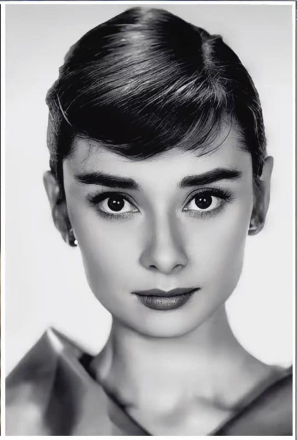 彭小苒这个赫本造型,虽然真的很美,但有一点特别奇怪,她的刘海形状怪怪的,正面看好像短发一样。找到了赫本的照片来做对比,发现赫本的刘海就是有弧度的,看起来就不那么像短发造型。不过彭小苒的脸比较优越,即便是这样的刘海,她也能轻松驾驭,整个人就像一个精致的芭比娃娃!