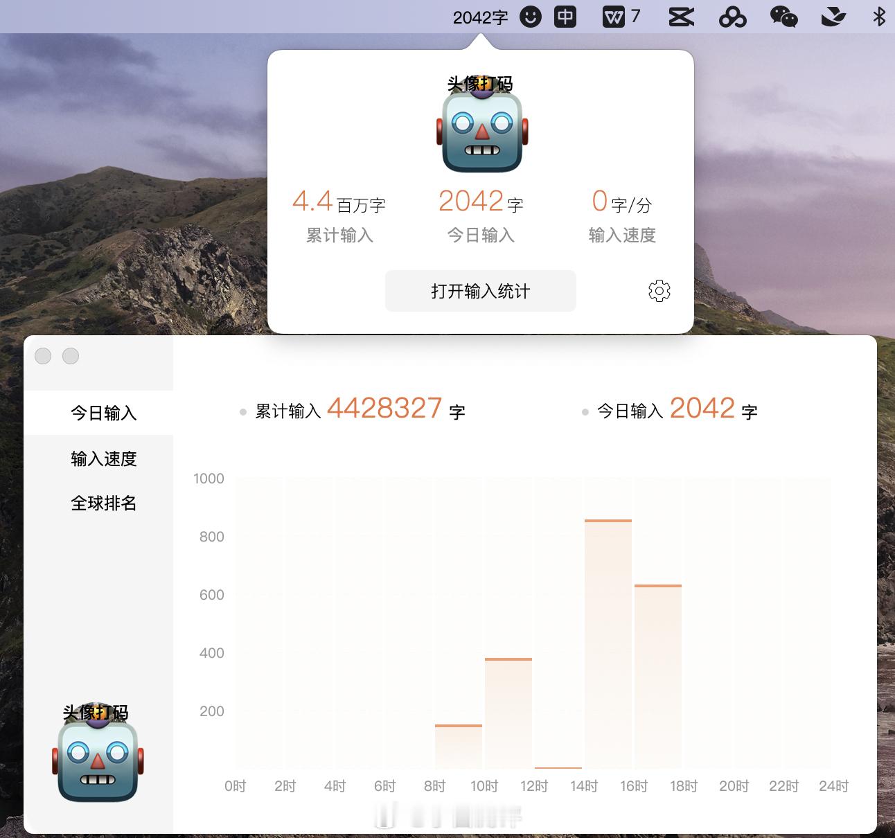 有没有为了字数统计不换输入法的?刚发现电脑端这个输入法已经累计442万字了~ 这几年一直没换过,可惜搜狗输入法手机端和电脑端数据无法同步,不然字数累计会更多些