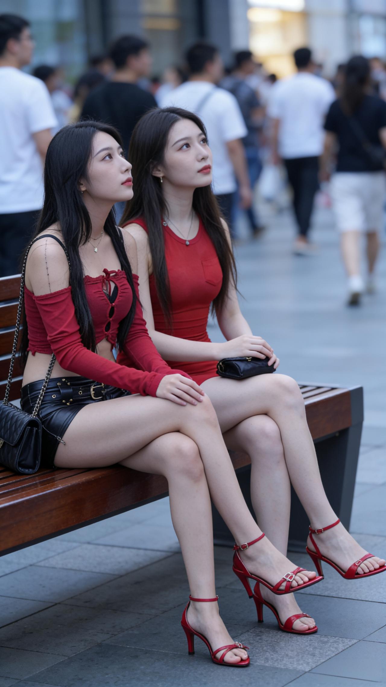 👯♀️ 姐妹花一起逛街,红衣姐妹美翻天!
