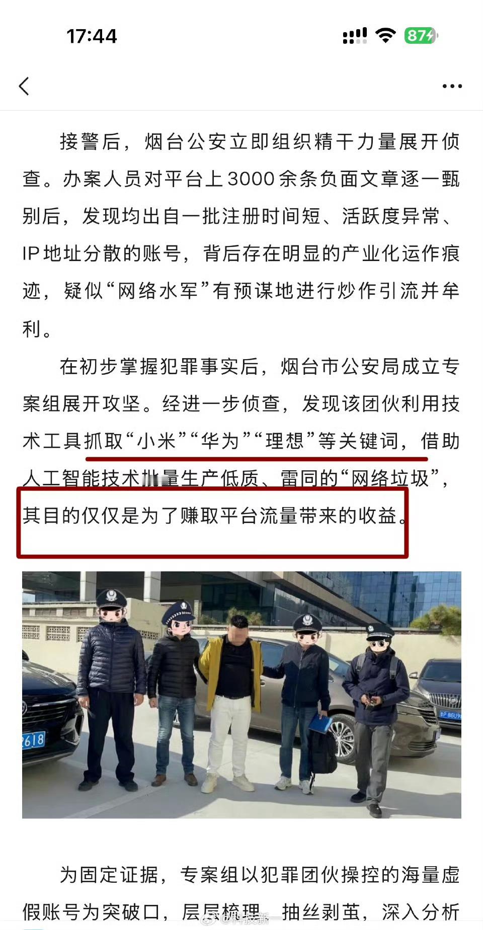 建立8千个账号,逮着理想,小米,华为黑,甚至还搞对立拉踩,靠这种搞对立赚平台流量。一个帖子差不多10多块,一个账号获利100多,金额超过100万天天被带着搞对立的网民一脸懵逼…除了犯罪分子以外,这平台有没有点责任?